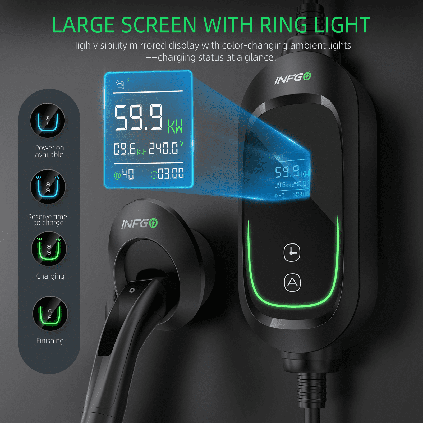 ●Real-Time Charging Status with LED Display:Stay informed with the dynamic ring light and big LED screen that provides real-time charging status. Easy to set charging period and adjust the amperage freely, ensuring you’re always in control of your vehicle’s
