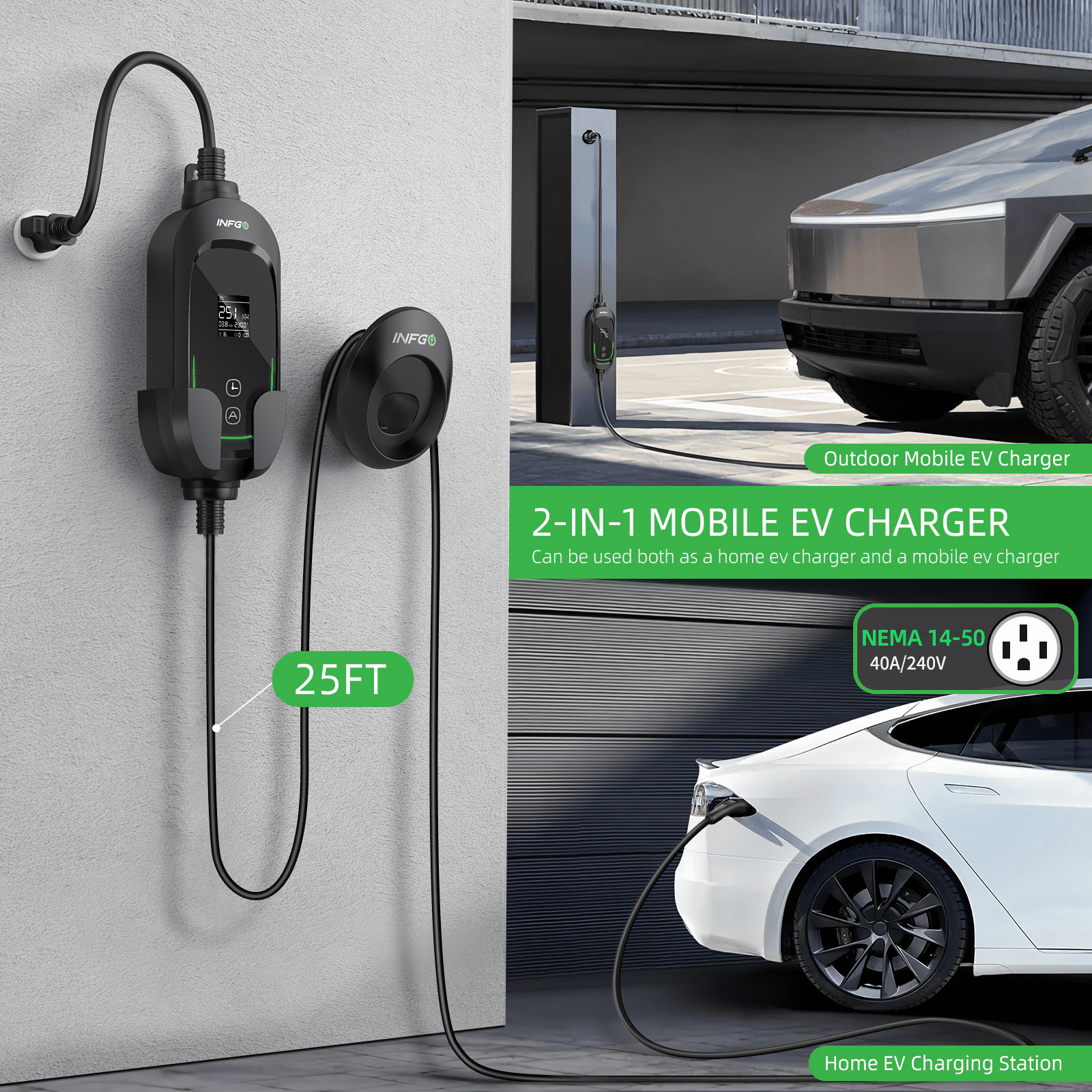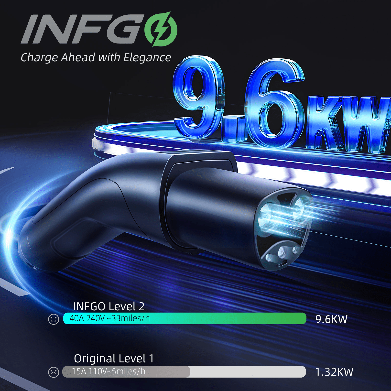- Powerful Level 2 NACS Charger: Comes with a NEMA 14-50 plug, allowing you to easily connect to a NEMA 14-50 outlet for a maximum output of 40A, 240V, and 9.6kW, delivering max 33 miles of range per hour of charging,Perfect for home and travel use