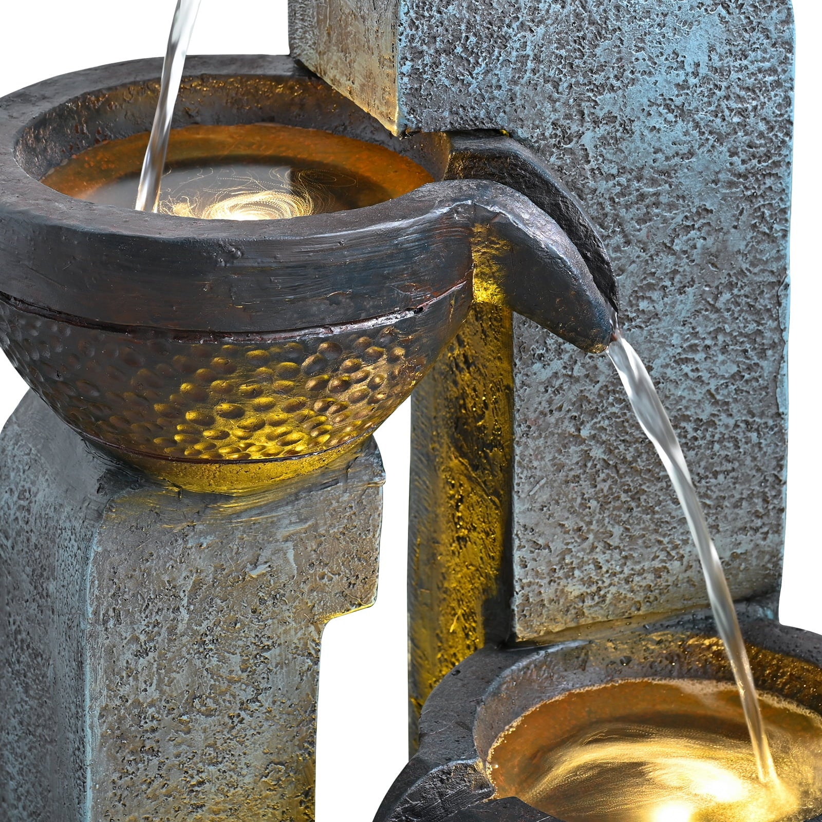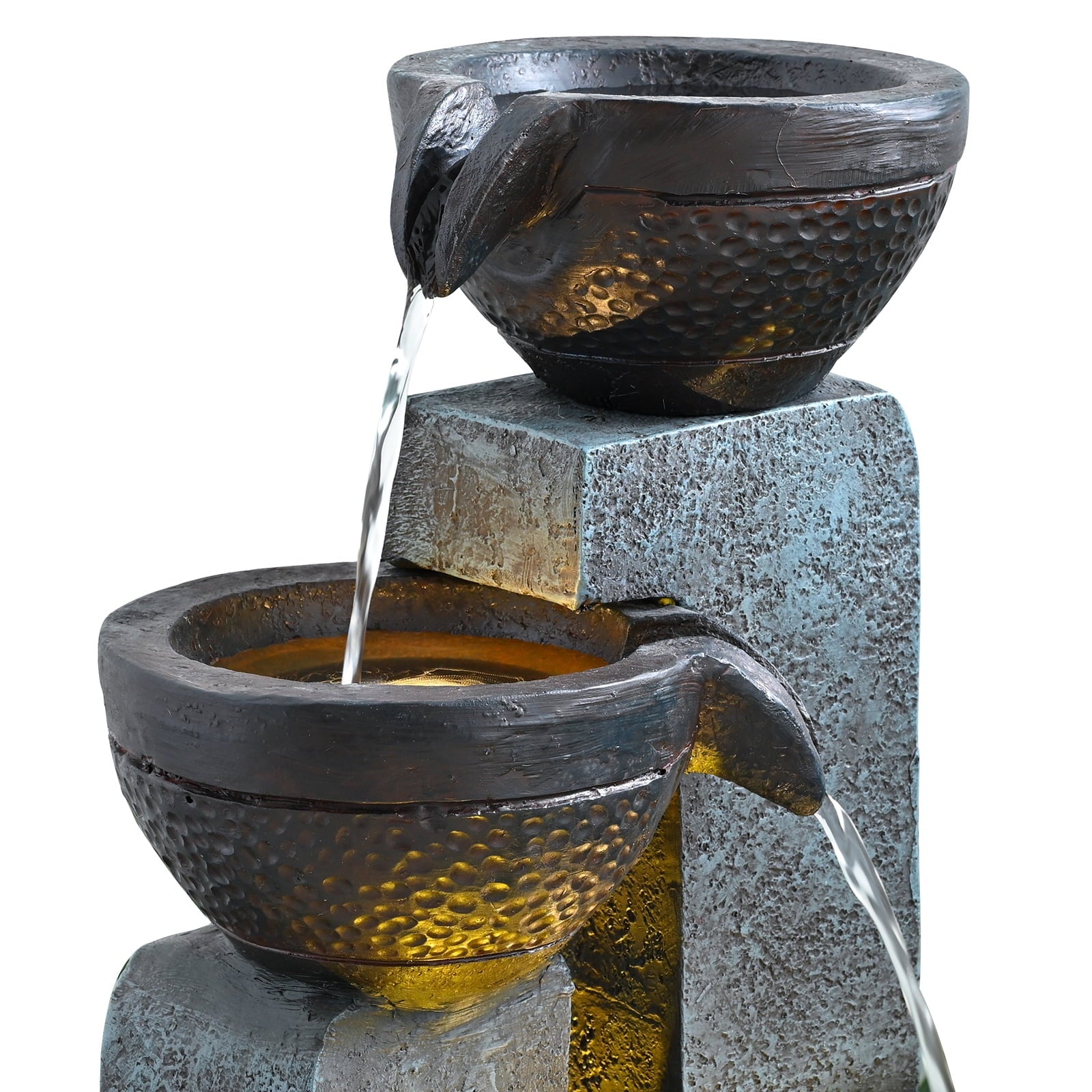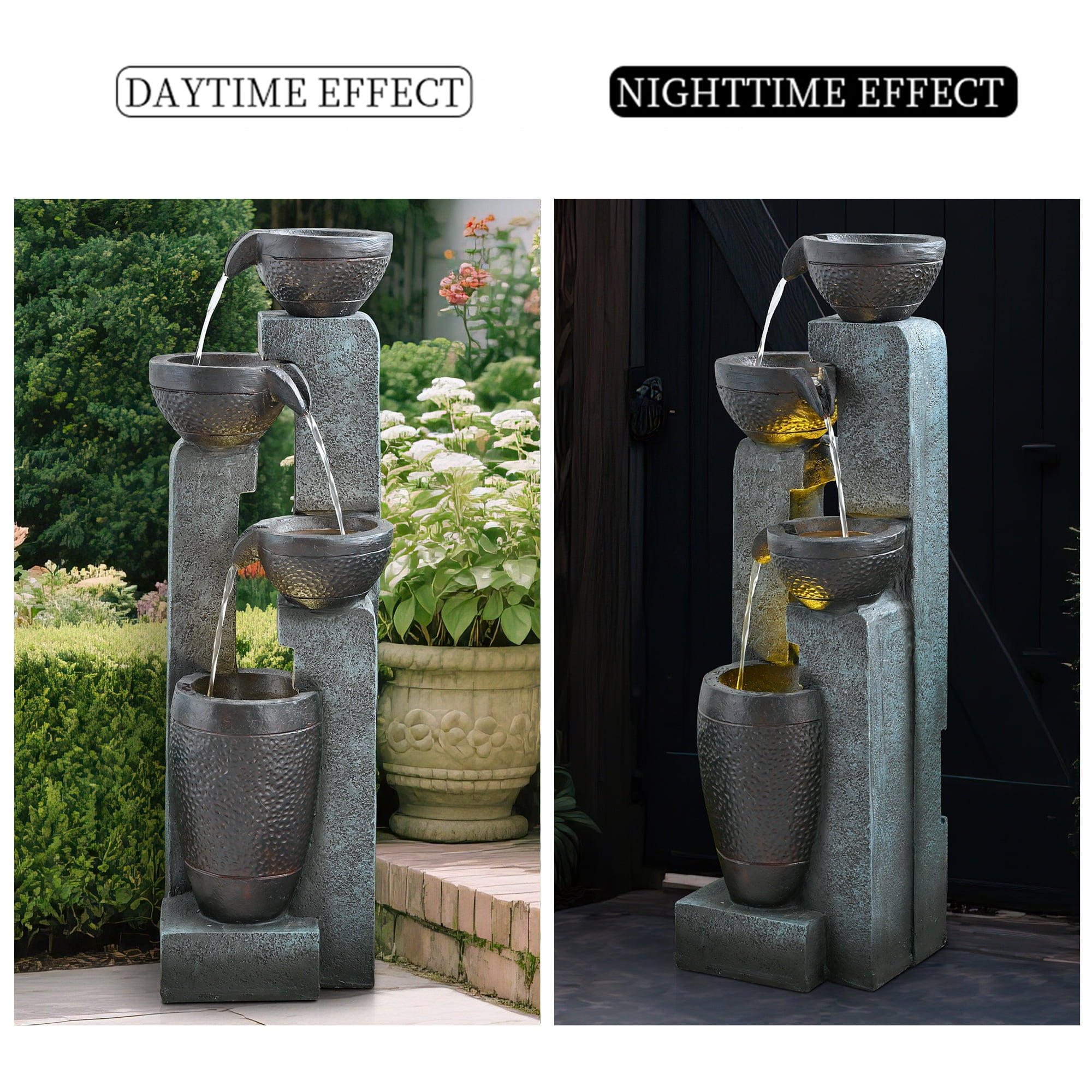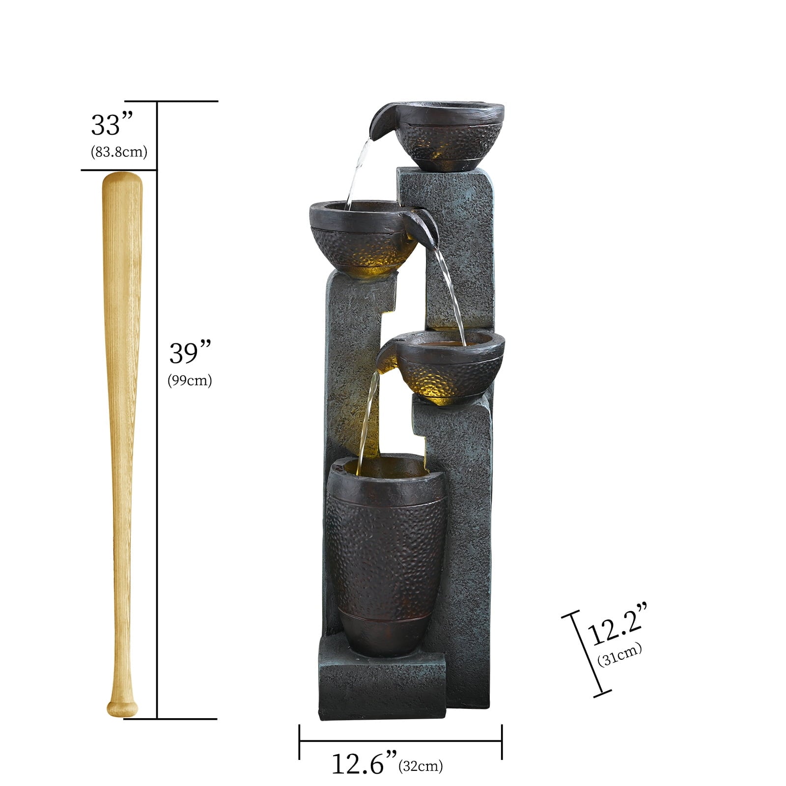 Home Fountains 40″ inch Water Fountain Outdoor&Indoor 4-Tiers Large Patio Decor Garden with LED Light&Pump