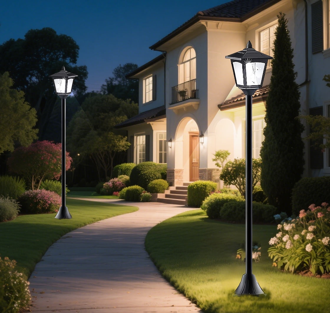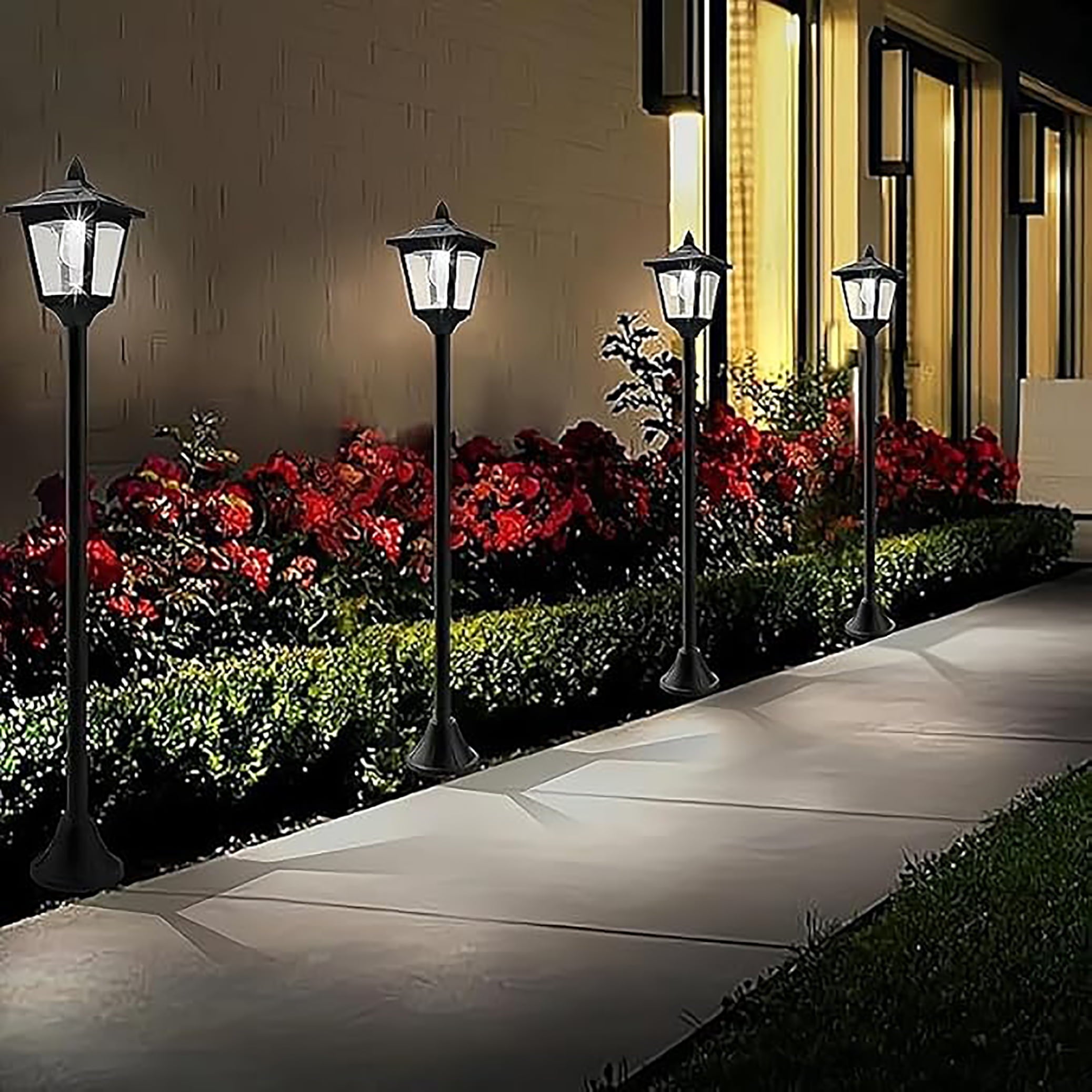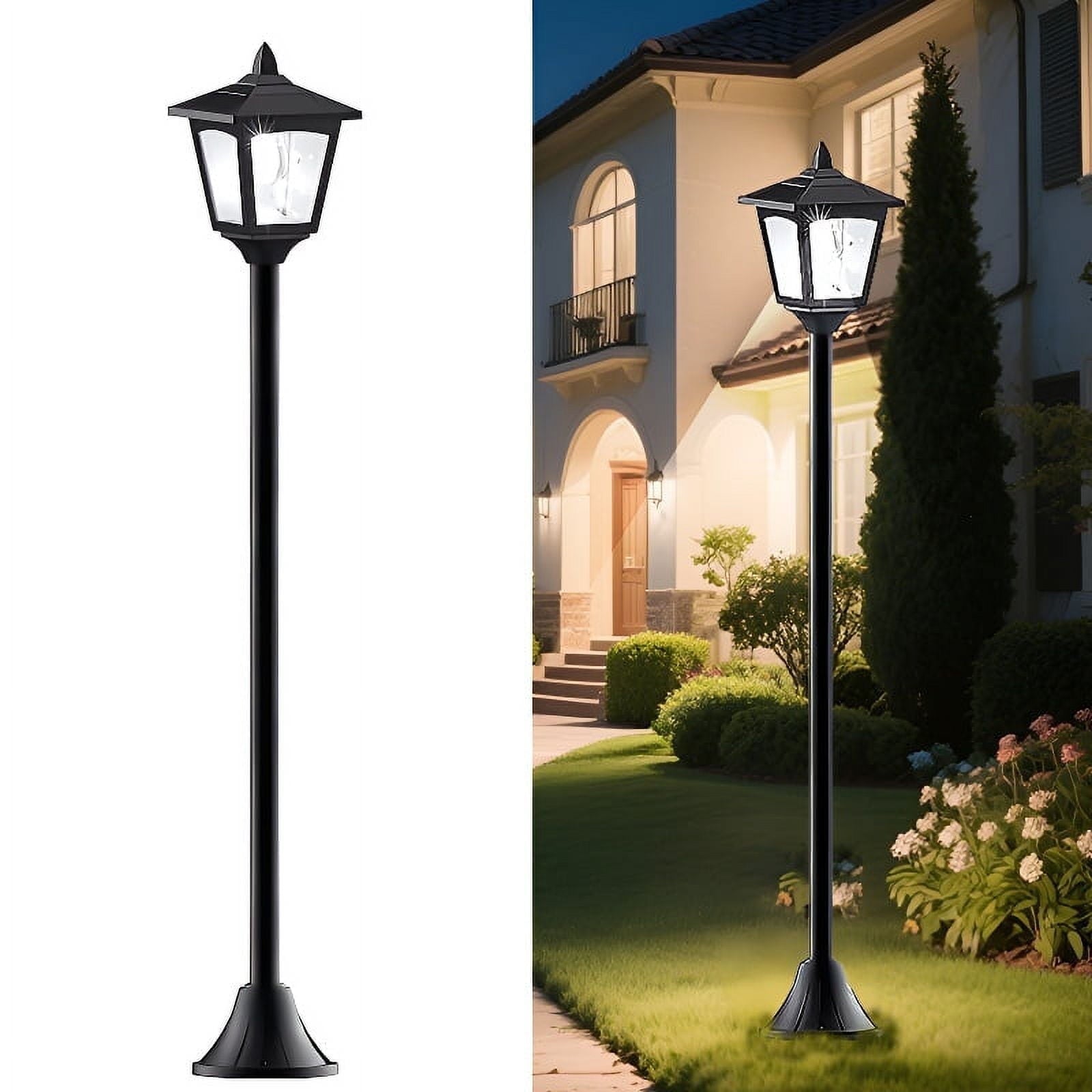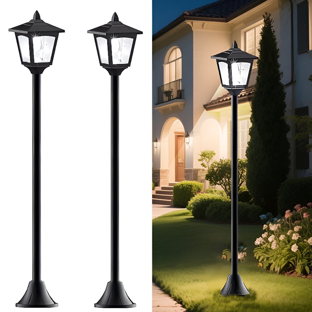 Upgrade your outdoor lighting with these solar-powered LED lamp post lights. Featuring an auto dusk-to-dawn sensor, they automatically illuminate your yard, driveway, or pathway at night and turn off at dawn, providing hassle-free illumination. Crafted with weather-resistant materials, the IP65 waterproof design ensures reliable performance in any weather. With a classic look and soft glow, these eco-friendly lights enhance the ambiance and safety of your outdoor spaces without the need for wiring or electricity.