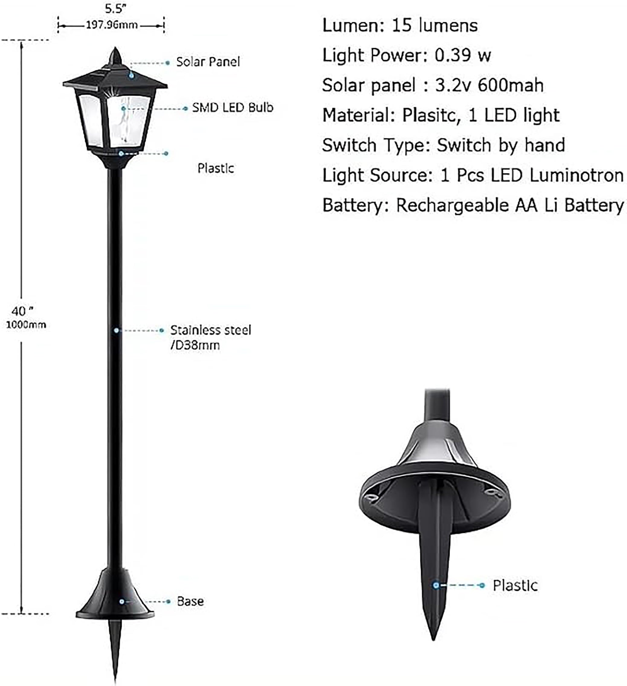 - These solar-powered LED lamp post lights are an eco-friendly and energy-saving outdoor lighting solution, charging in 6-8 hours and providing up to 8 hours of light without the need for electricity.