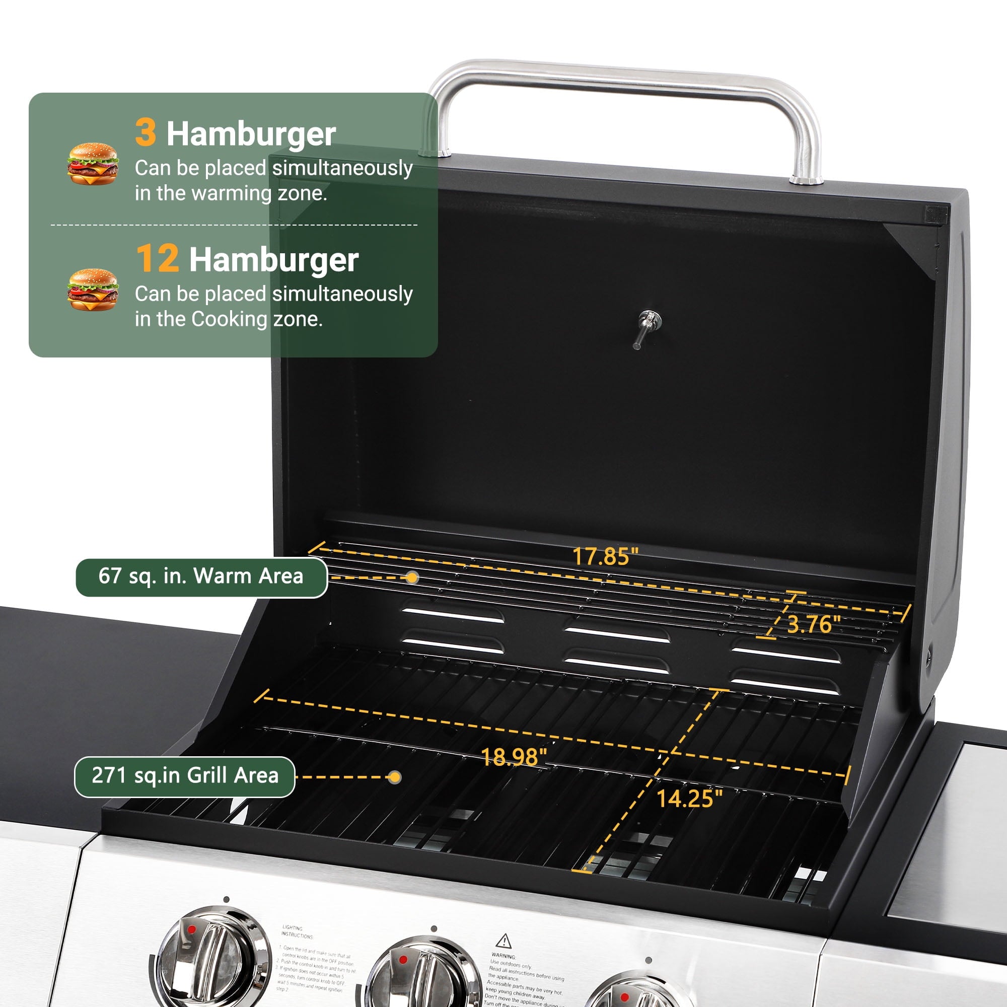 2. Larger Barbecue Area: This grill has a total surface area of 338 square inches, including 271 square inches of grilling space, 67 square inches of heating area, and can cook more than 15 burgers at the same time