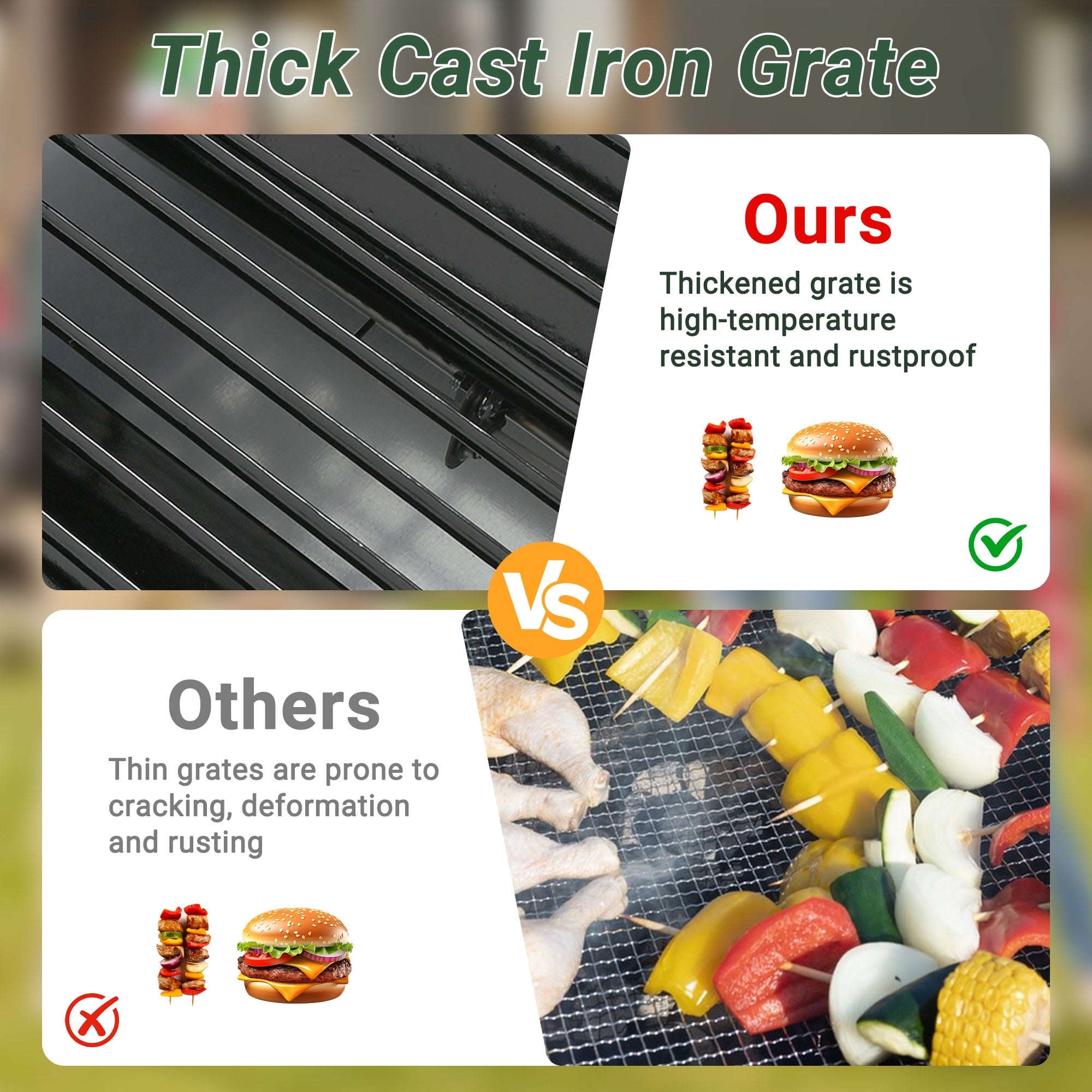Durable Enamel-Coated Iron Grill Grates: Our premium enamel-coated iron grill grates are designed to be durable, non-stick, rust-resistant, and crack-proof—ensuring your outdoor grill maintains peak performance for over 10 years.