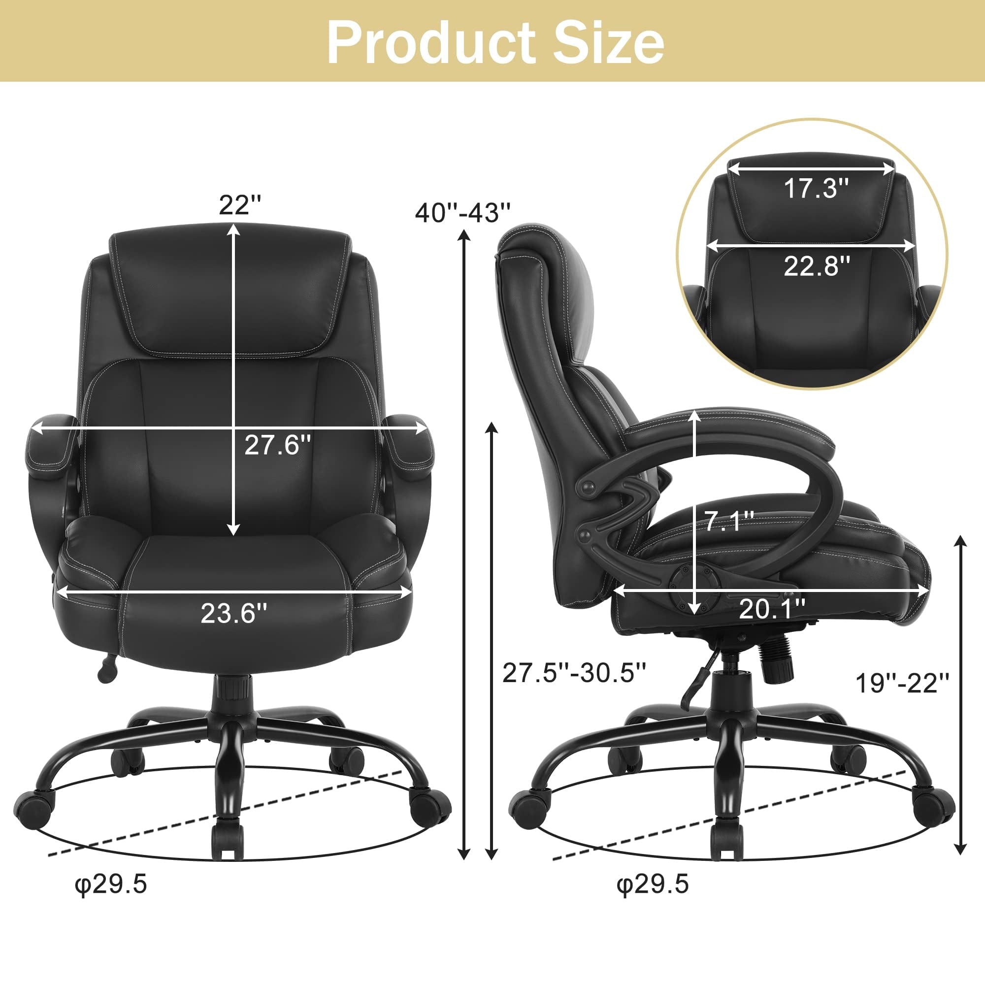 - 📚【SUITABLE FOR BIG & TALL PEOPLE】This spacious office chair features commercial-grade components and supports up to 400 lbs. The thickened cushion provides maximum comfort. The seat height is adjustable between 19″ and 22,” and the seat dimensions are 23.6″ (W) x 20.1″ (D).
