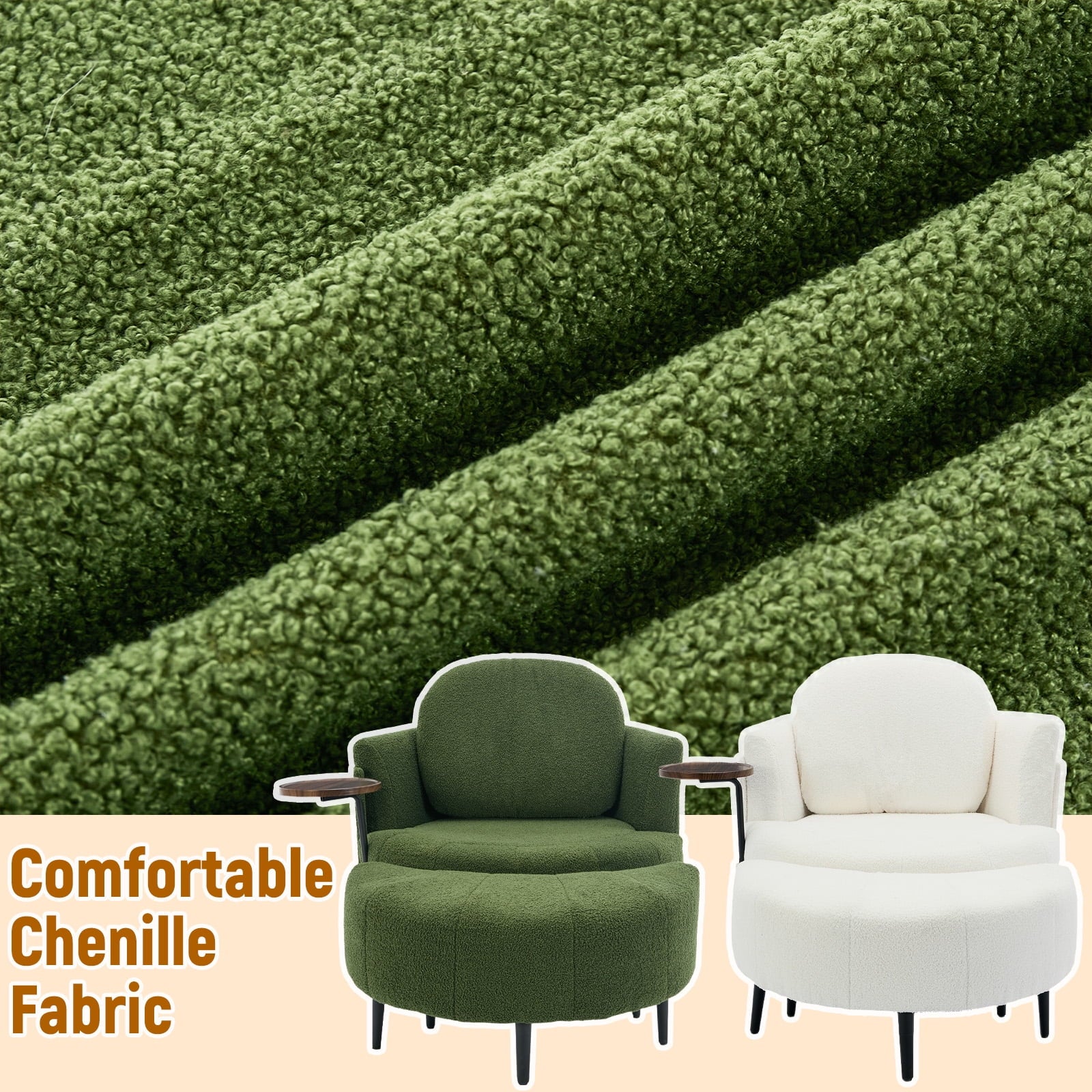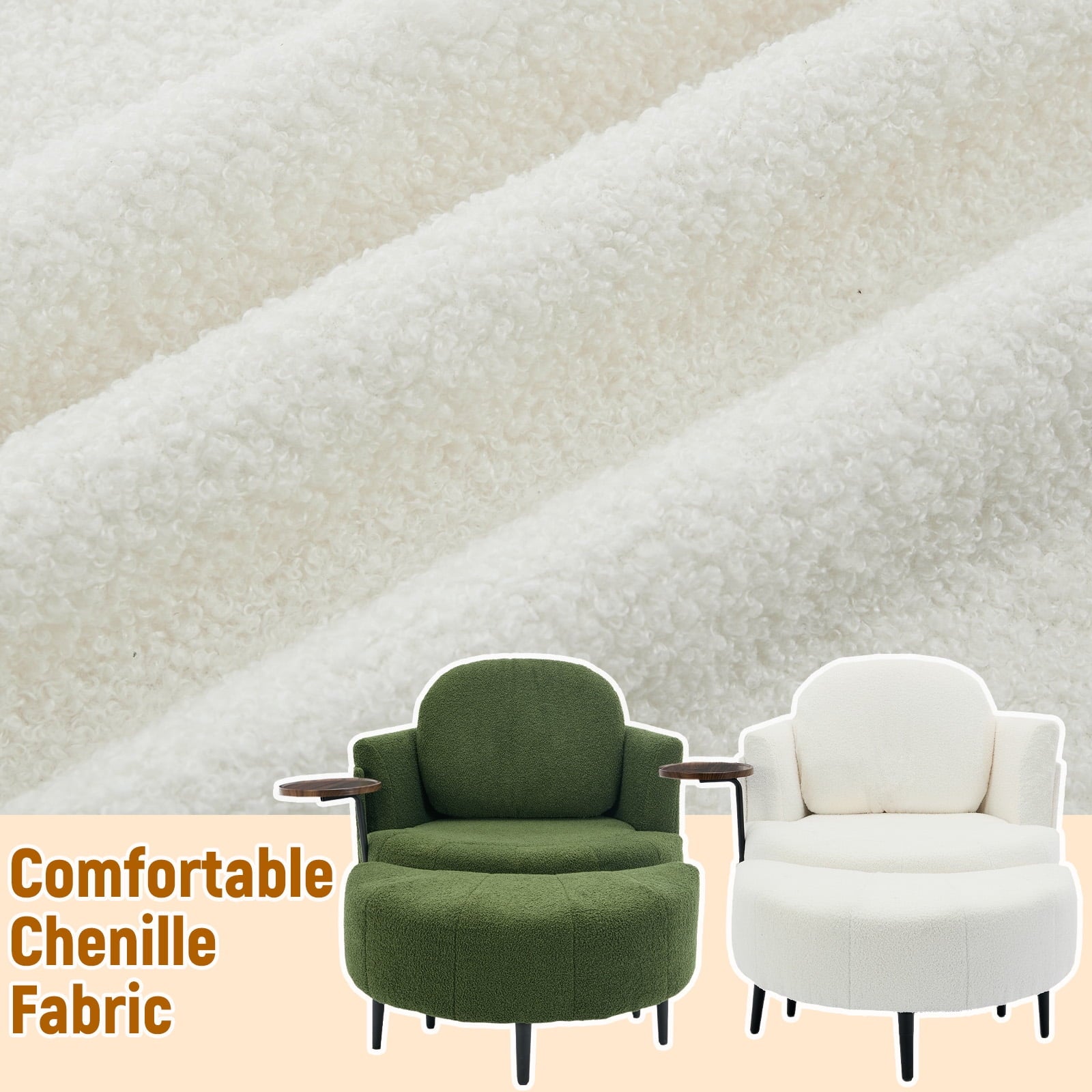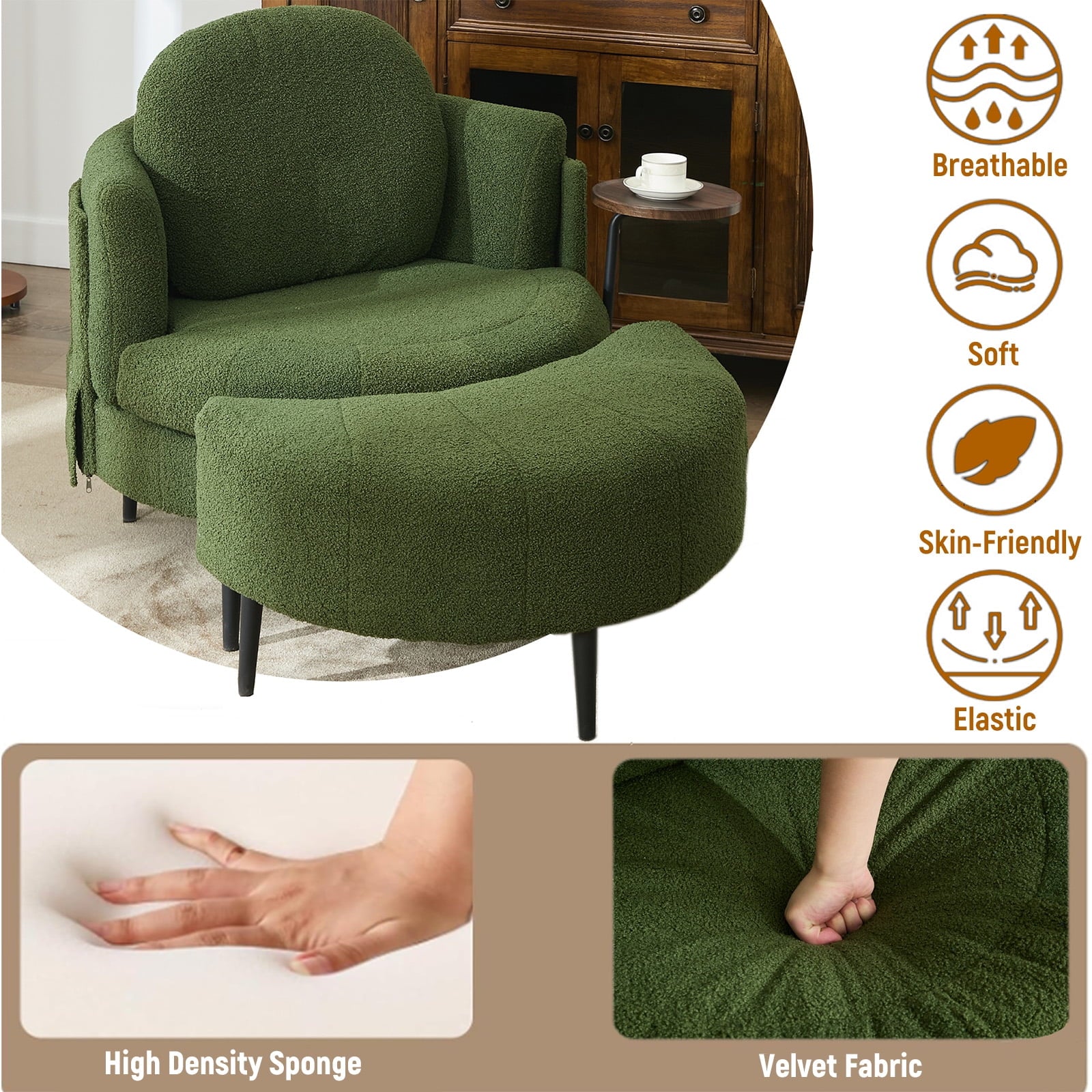 - Movable Footstool: Comes with a movable moon shaped footstool, this single swivel chair provides excellent leg support. No matter how long you read, chat, or watch, you won’t feel uncomfortable. The footstool can be easily adjusted according to the scene needs, enhancing the functionality of this chaise lounge.