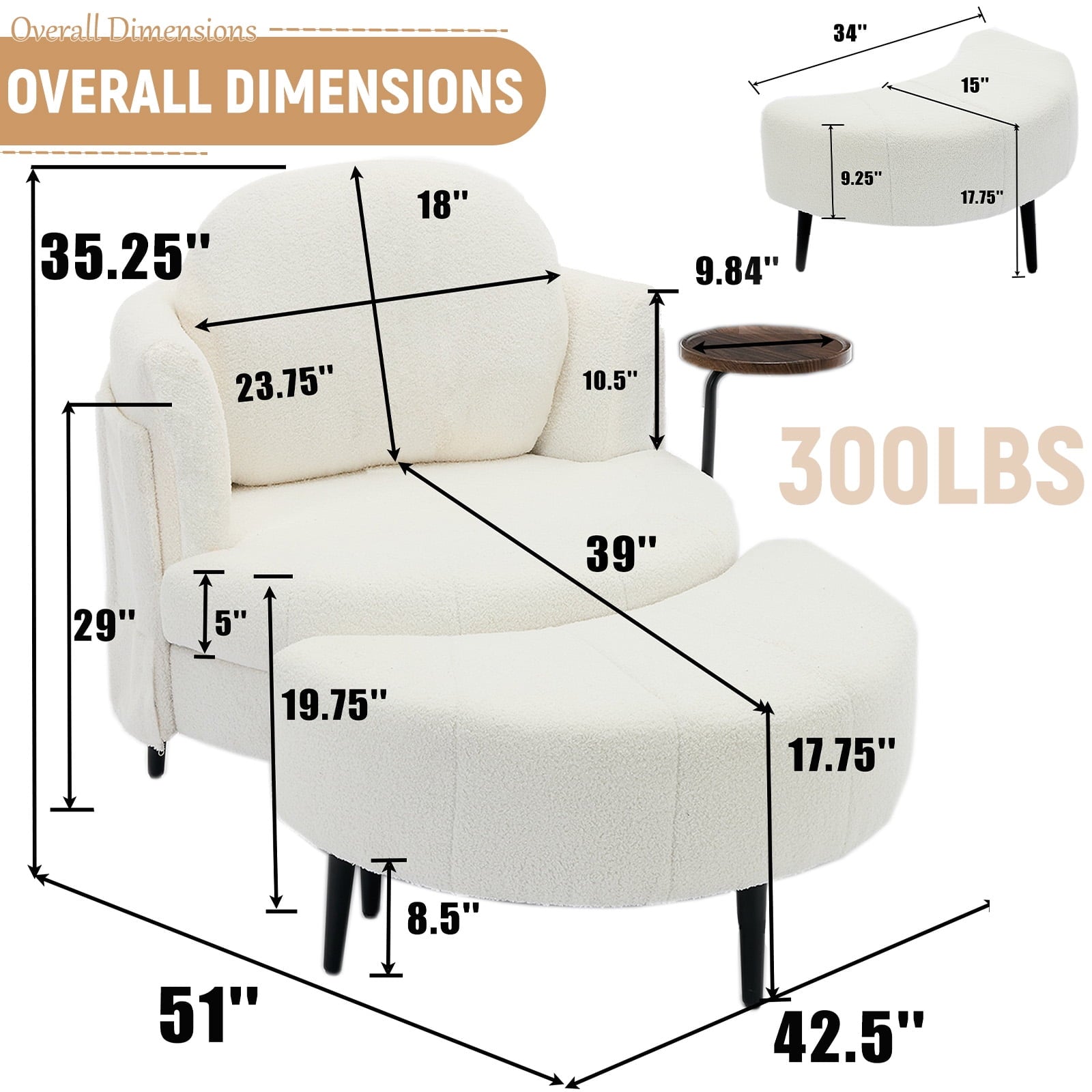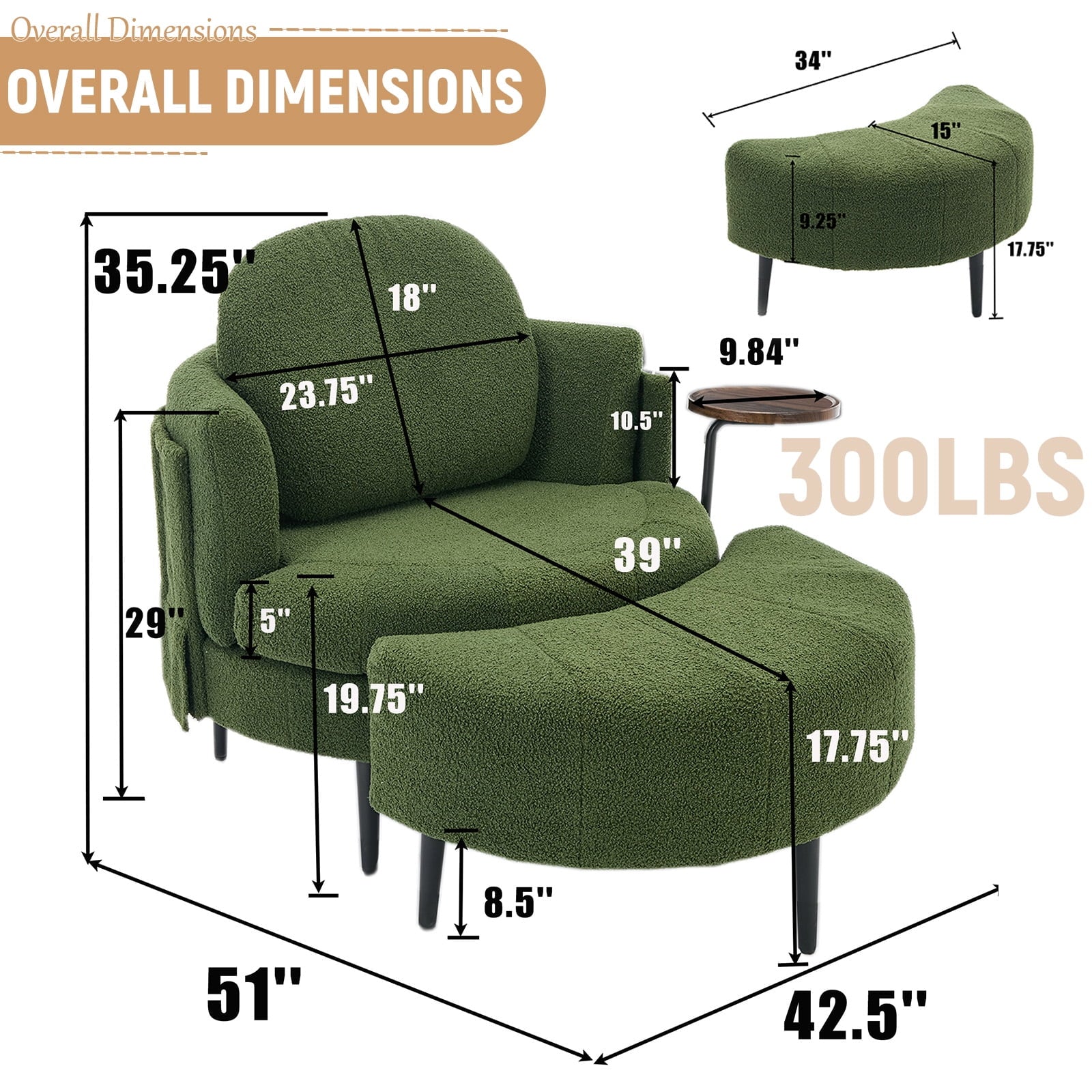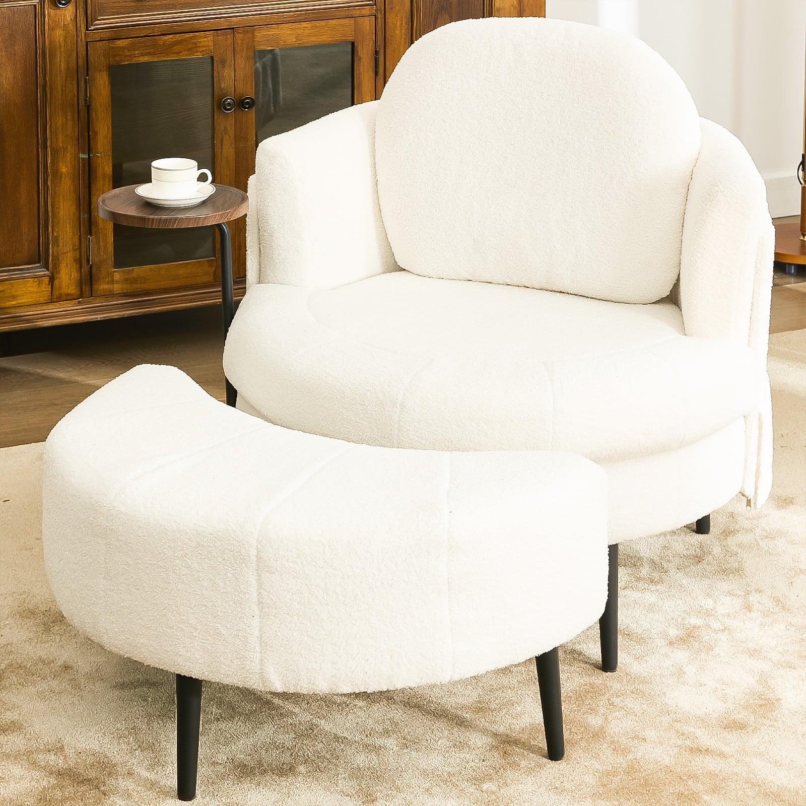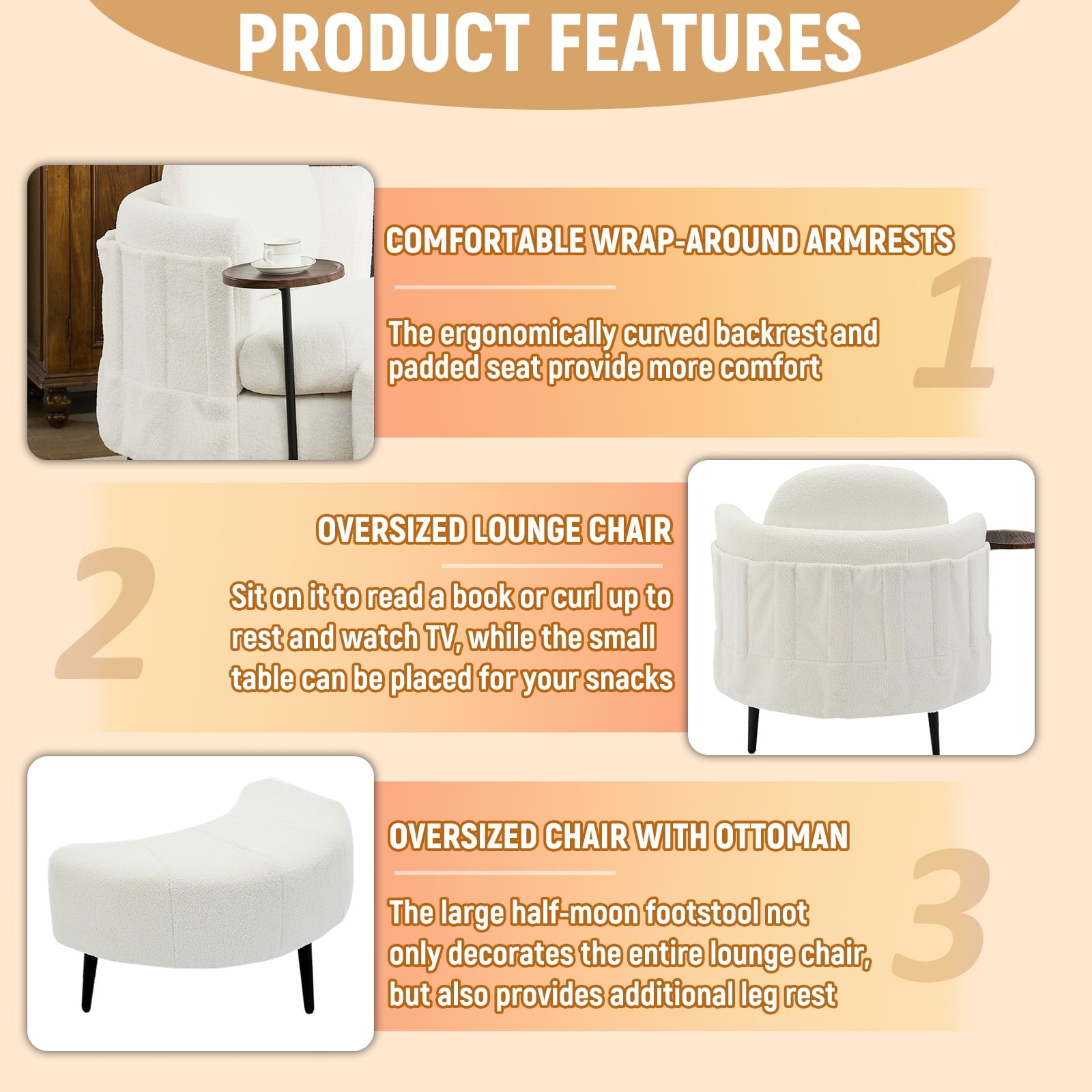 - Movable Footstool: Comes with a movable moon shaped footstool, this single swivel chair provides excellent leg support. No matter how long you read, chat, or watch, you won’t feel uncomfortable. The footstool can be easily adjusted according to the scene needs, enhancing the functionality of this chaise lounge.