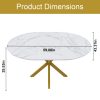 - 【Elegant Farmhouse Aesthetic】Boasts a sophisticated tabletop with realistic veining patterns paired with a sturdy metal legs base, creating a perfect blend of farmhouse style and modern elegance; this oval kitchen table serves as a stunning centerpiece that complements both contemporary and traditional dining room decor.