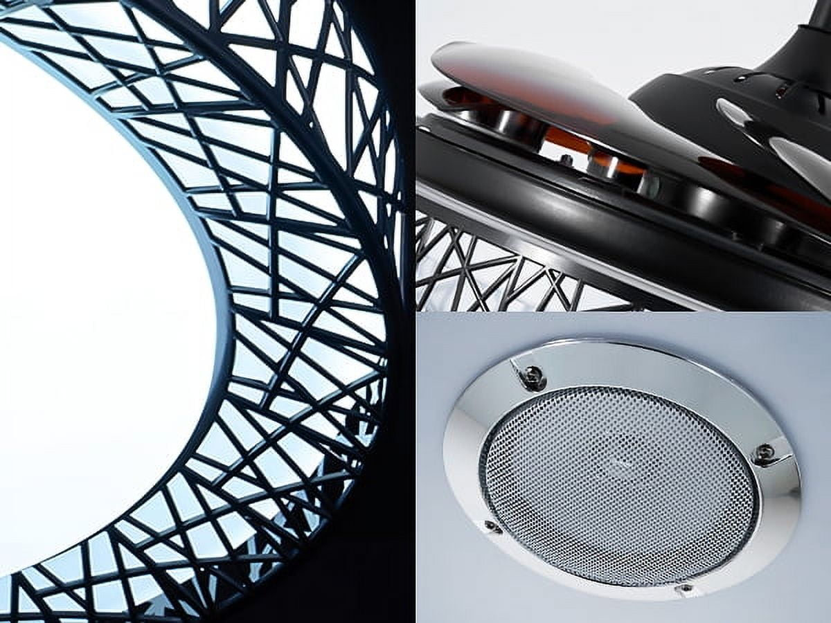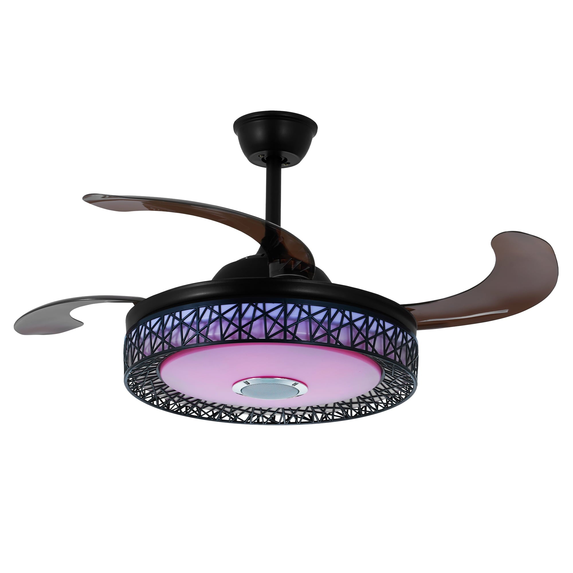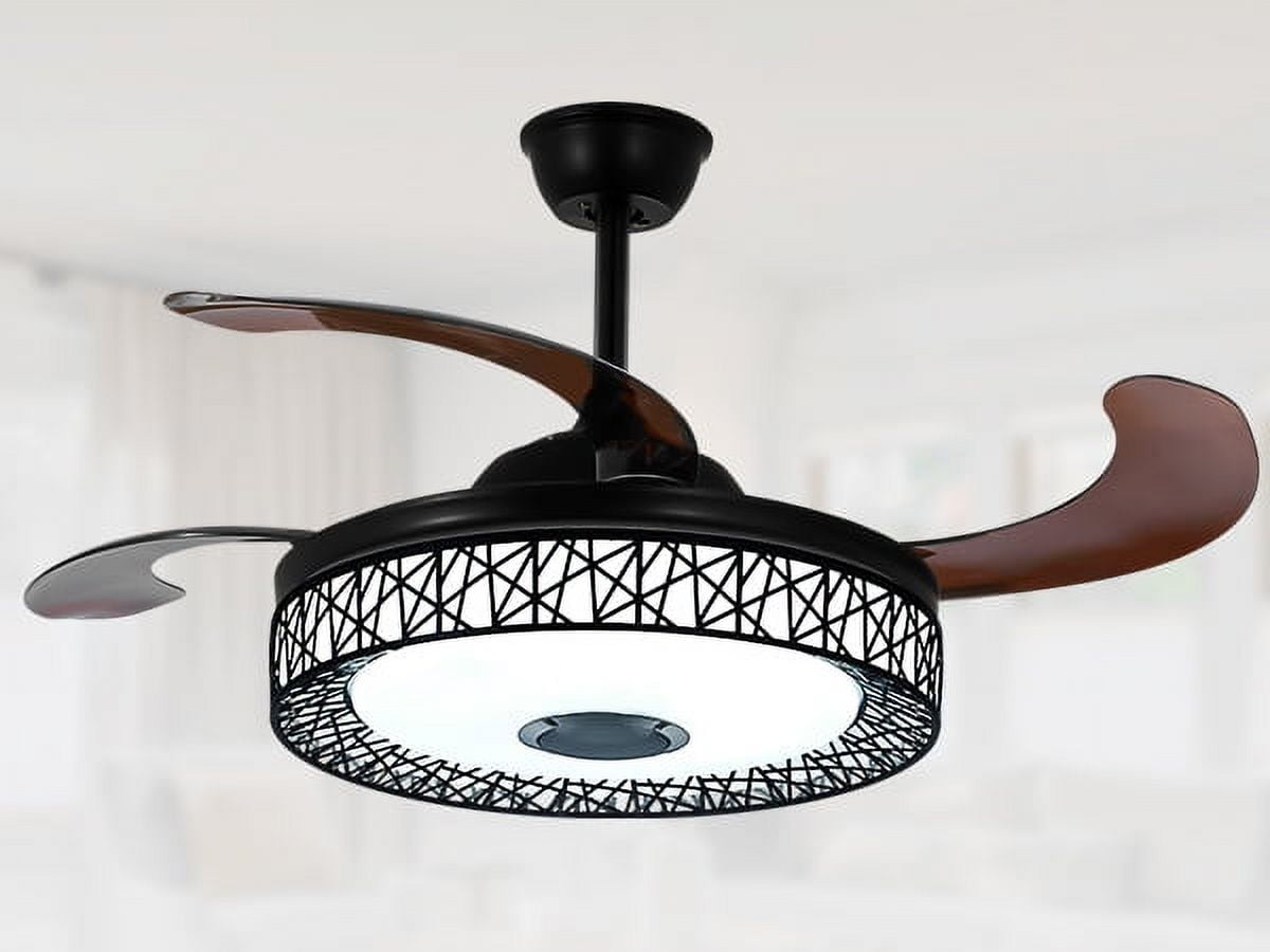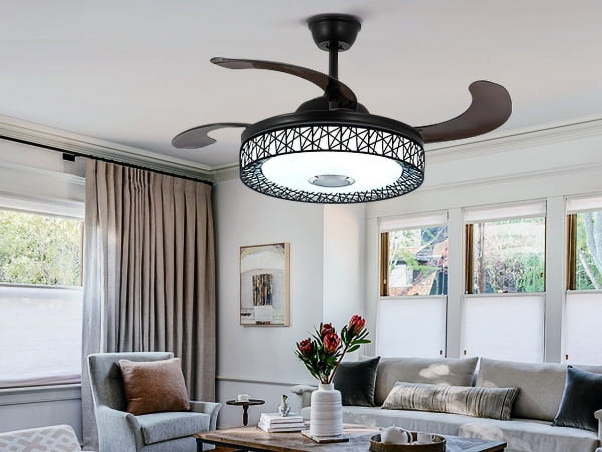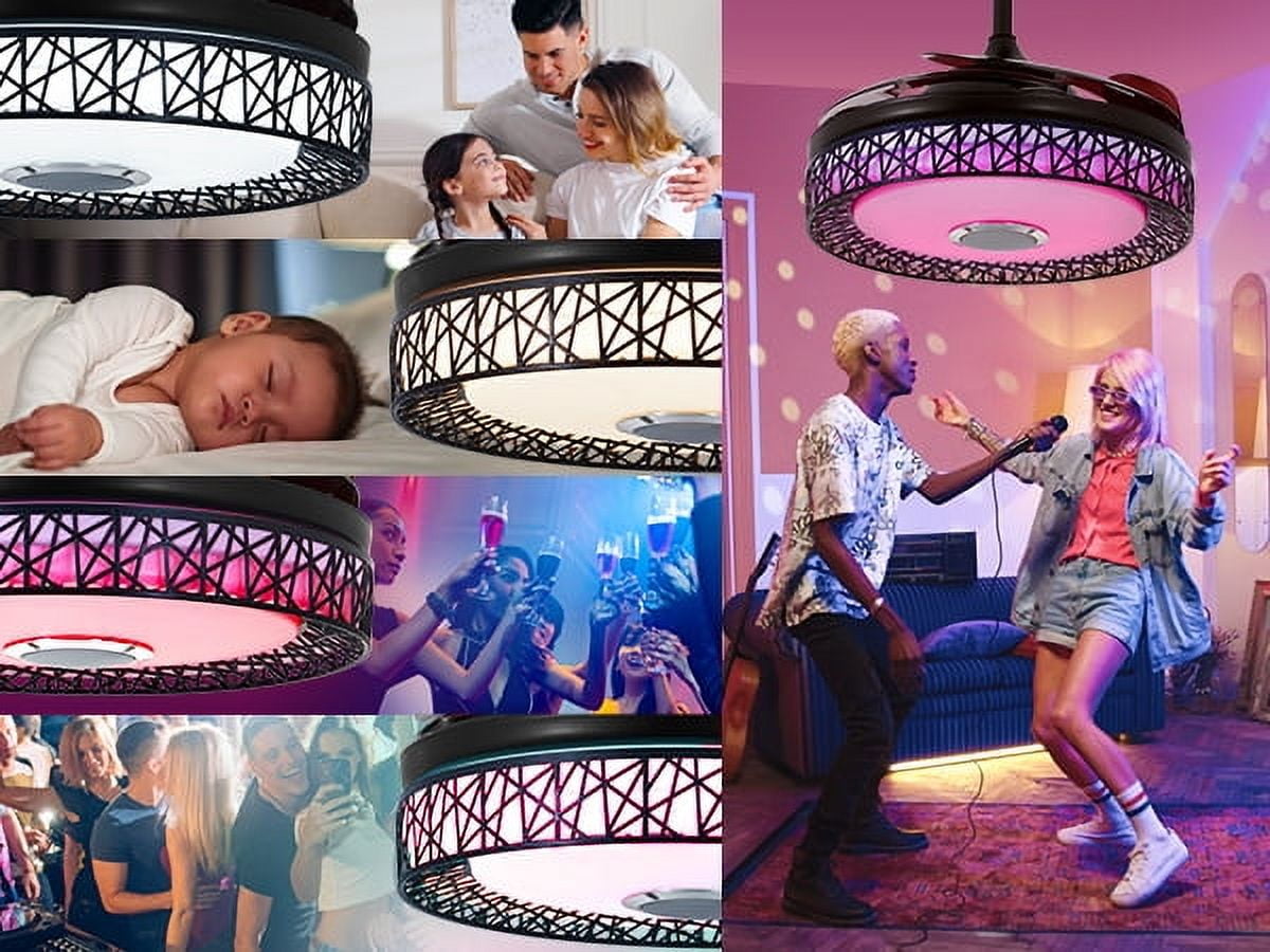 42″ Black Nest Ceiling Fan with Color-Changing LEDs & Bluetooth Speaker – Retractable Smoked Blades, 5000 CFM Quiet Motor, APP/Remote Control for Living Room/Patio