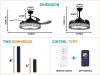 Control mode: With remote control, LED lamp seven-color dimming (” seven-color “refers to colorful meaning) LED lamp wattage (36W), lumen (3500K), air flow (CFM) wind flow in 5000CFM