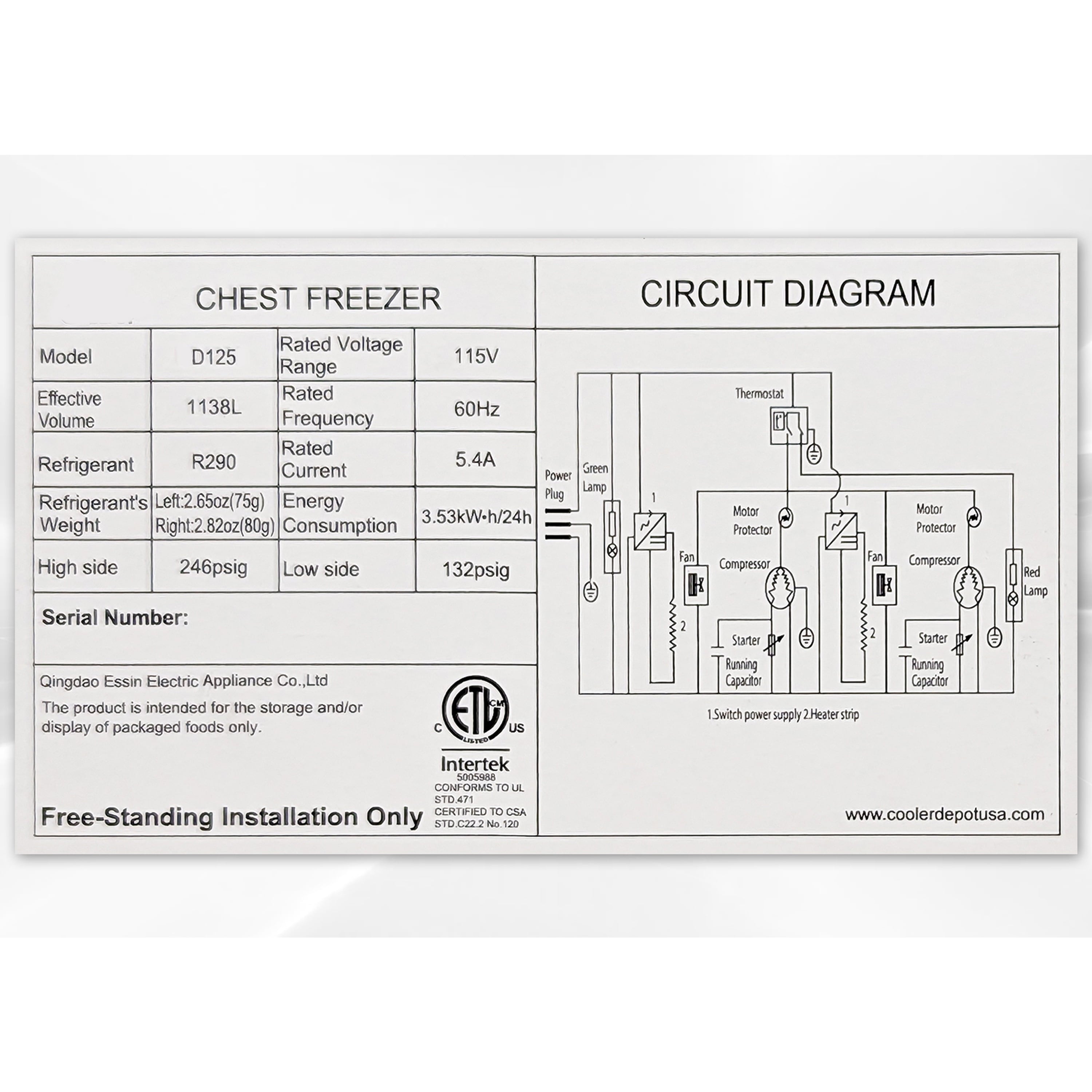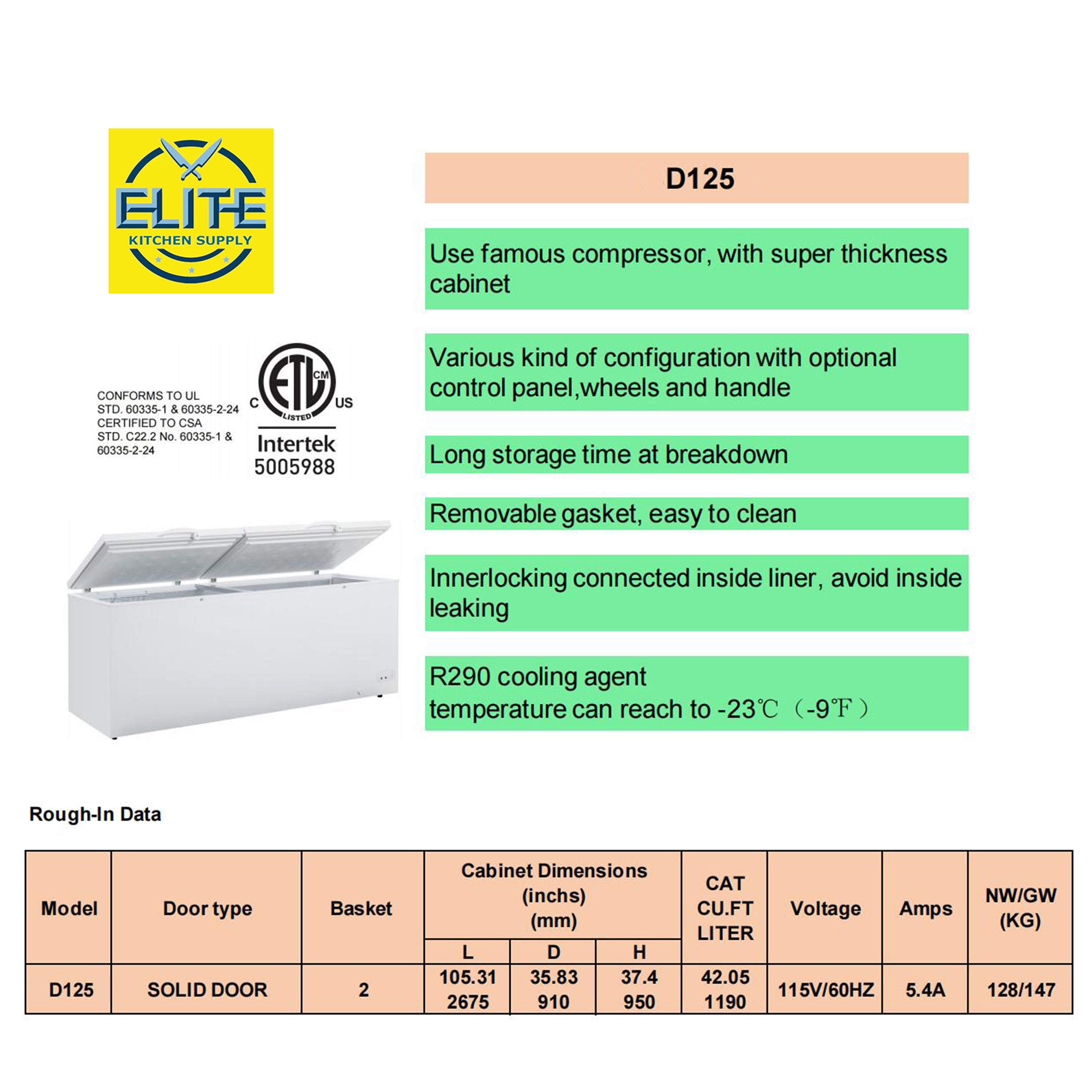 Voltage: 115/60HzDoor type: solid doorNet weight: 282NSF Certified