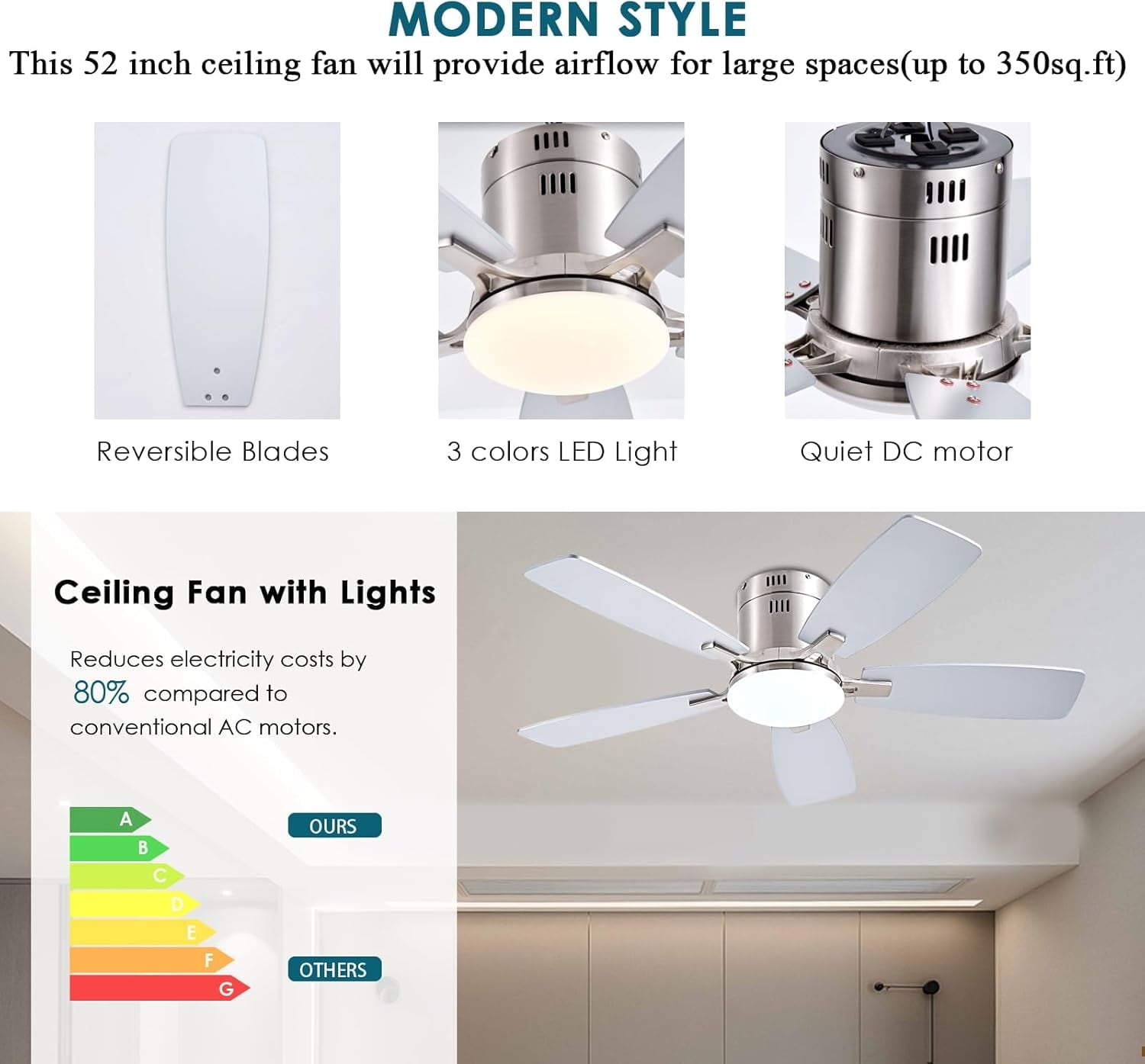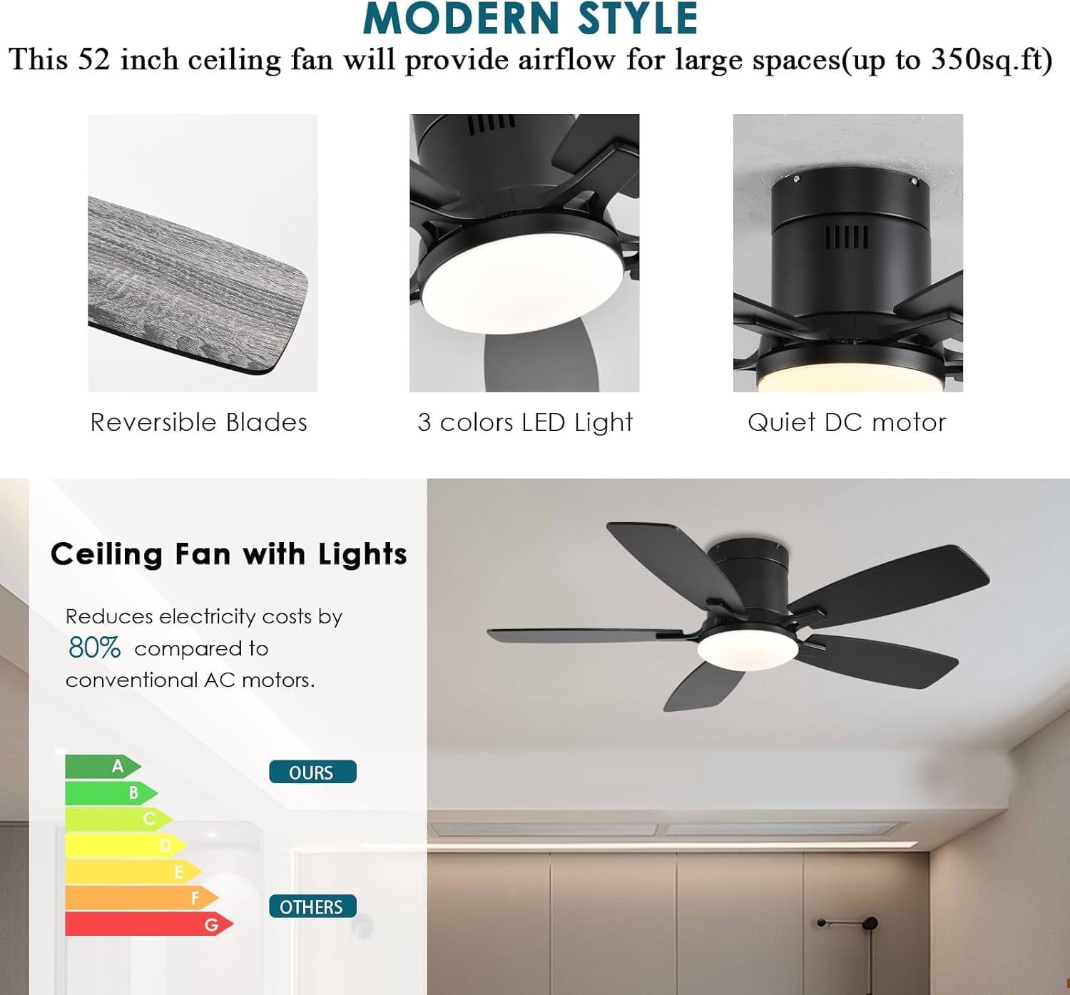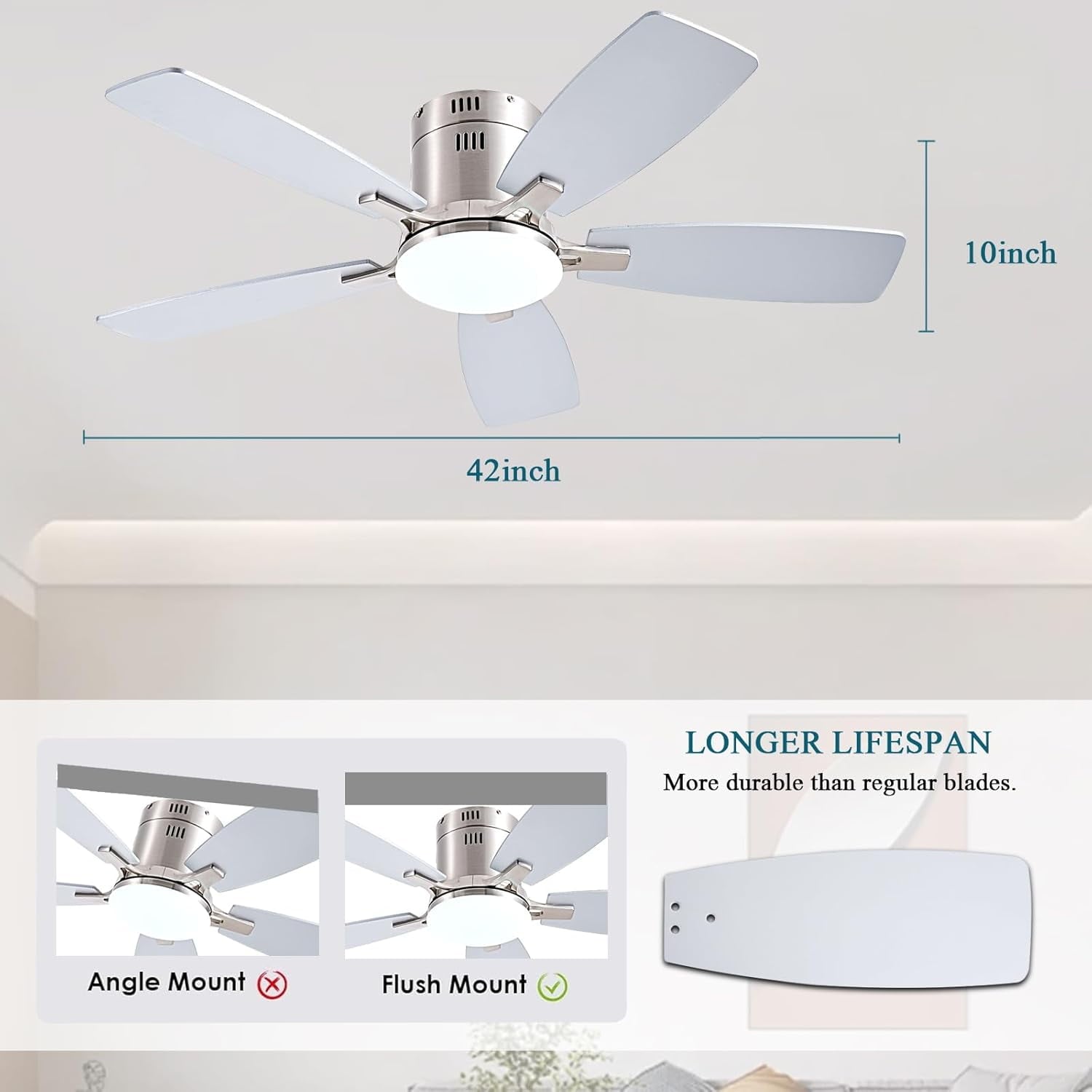 - Low Profile Flush Mount: We provide very detailed instructions and installation videos to help you complete the flush mount installation. Suitable for farmhouse, living room, bedroom, office, study, kitchen or other small indoor spaces. Besides, this is also a outdoor ceiling fan for patio, breezeways, gazebos, pergolas and other outdoor spaces. (Not to be exposed directly to rain)