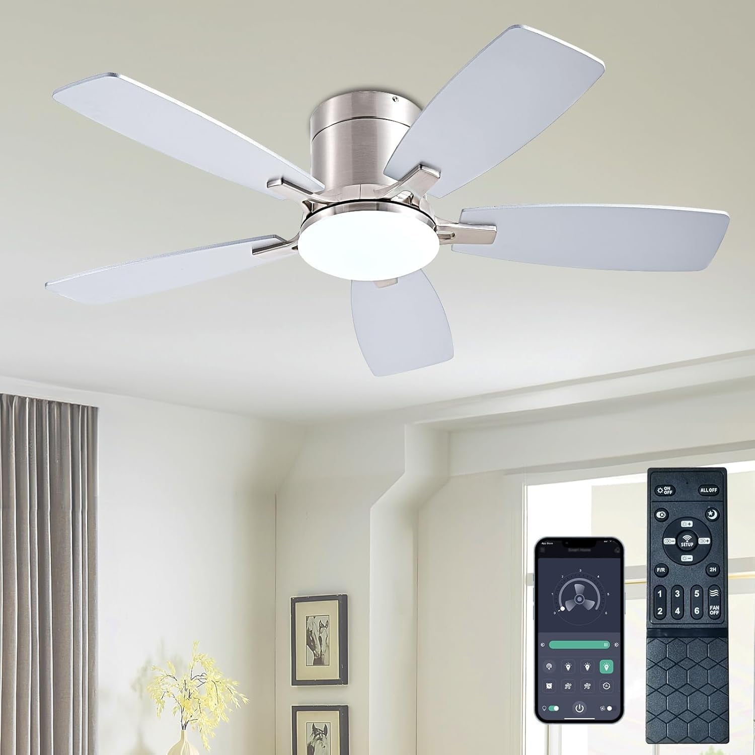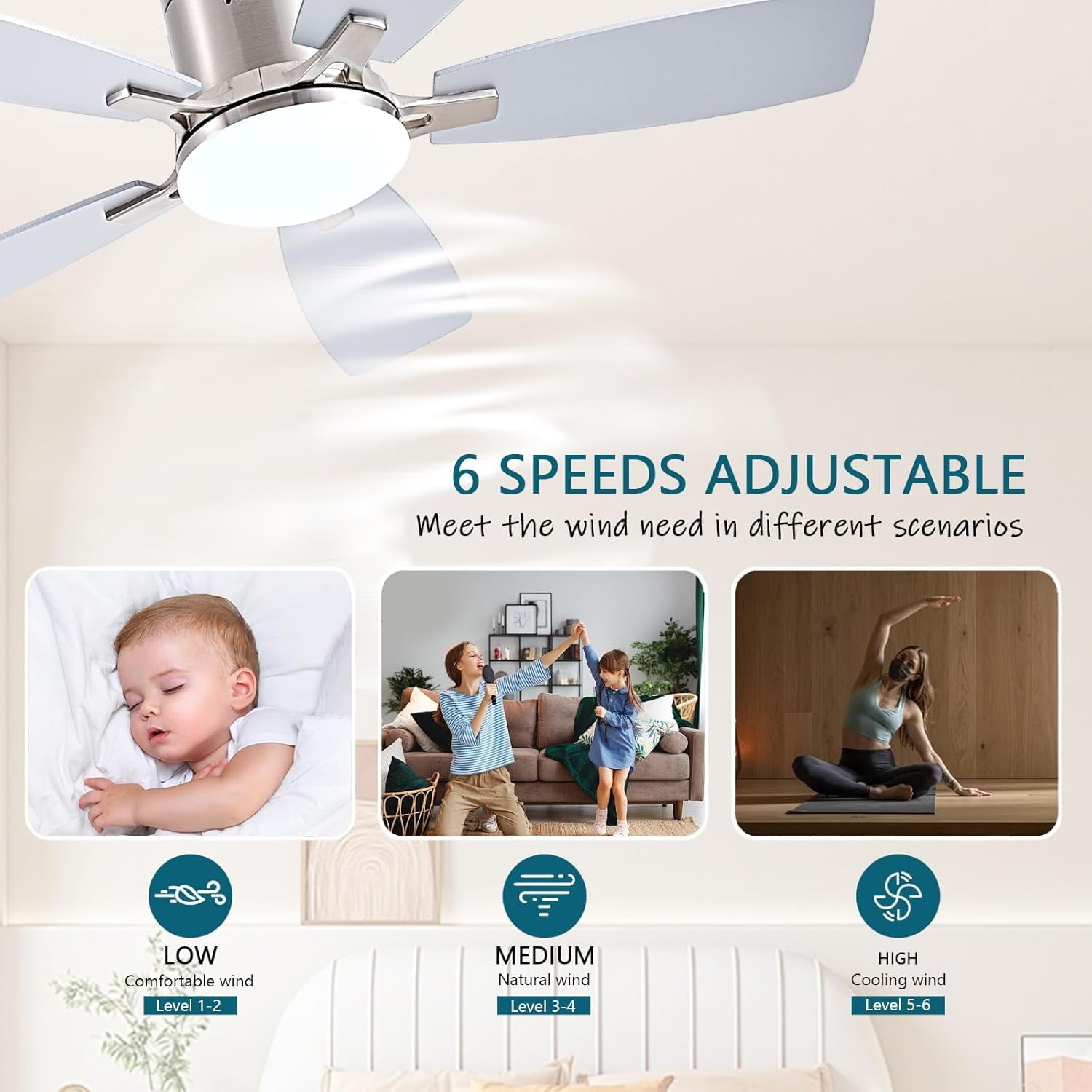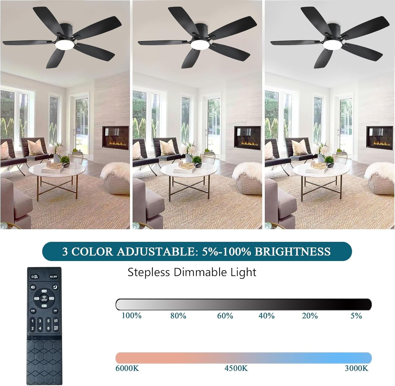 - Ceiling Fans with Remote: All operations can be controlled by the remote controller, adjust the fan speed with 6 levels, select light color temperature, and supports timing (2 hour) sleep shutdown, on/off. The fan and light can be turned on separately.