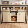 42" Kitchen Island Storage Sideboard with Sliding Barn Door, Table Island Kitchen Cabinet with 2 Side Hooks, 3-Tier Shelves, Multi-Functional Dining Storage for Living Room,41.2"x24.6"x72.1"