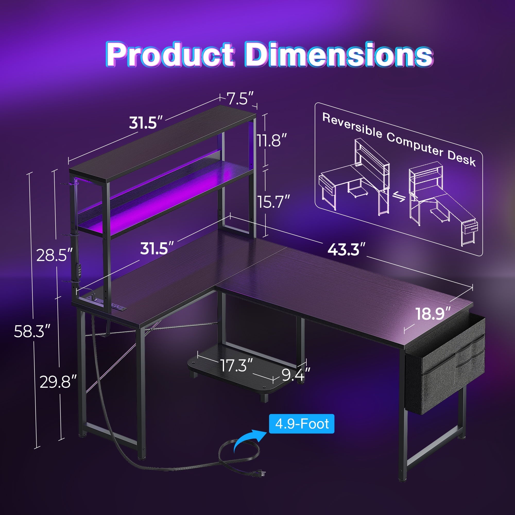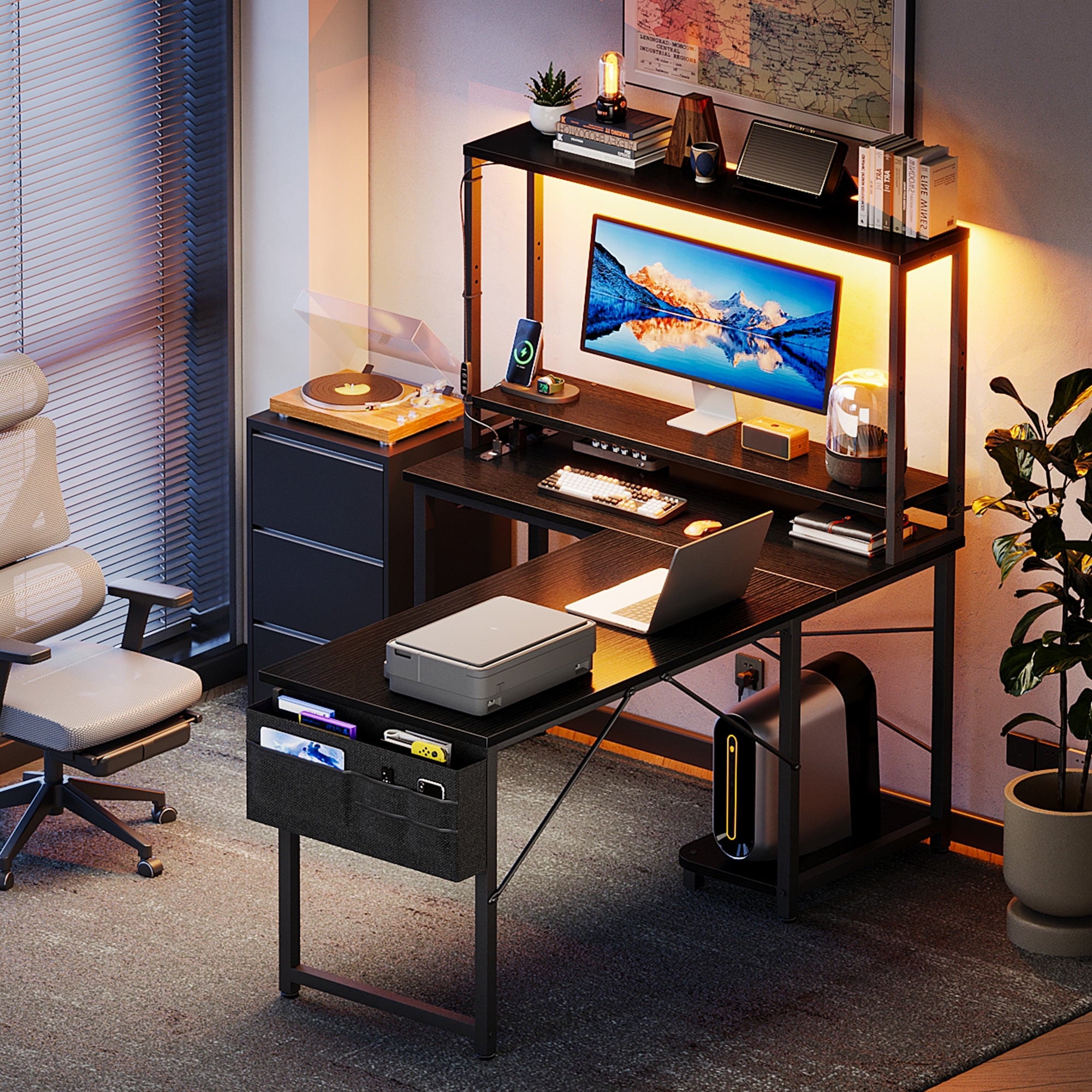 - Space Optimization & Hutch: The 43-inch L-shaped desk design maximizes corner space, providing ample work and gaming areas. The desk includes a hutch for additional storage to keep your workspace tidy.