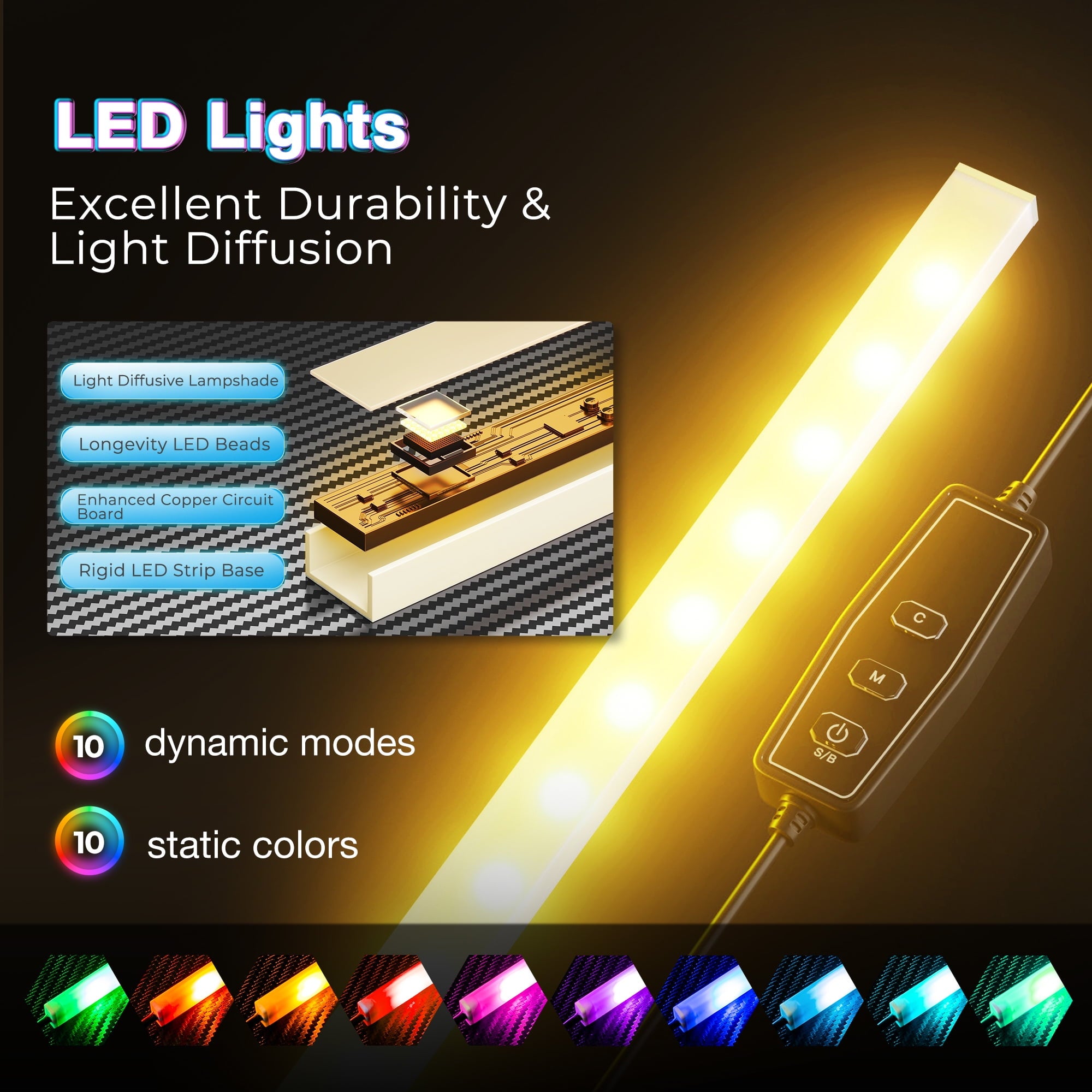 This 43-inch L-shaped office desk brings a touch of modernity and practicality to your home office or gaming space with its unique design and abundant features. Crafted with high-quality wood and metal, the desk surface is not only aesthetically pleasing but also wear-resistant, durable, and easy to clean. The L-shaped design maximizes space utilization, providing a spacious and comfortable work area for tasks such as working, studying, or gaming. Additionally, the desk is equipped with convenient power outlets, eliminating the hassle of searching for sockets and allowing easy connection of various electronic devices. Even more impressive, it features a built-in LED lighting system that adjusts to your desired brightness, adding a warm ambiance to your work or gaming sessions. This corner computer desk also comes with a practical hutch, offering additional storage space to keep your desktop clutter-free. Whether you’re a professional seeking efficient office solutions or a gamer passionate about your hobbies, this 53-inch L-shaped office/gaming desk is the ideal choice for you.