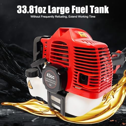Powerful Gasoline Engine for Heavy-Duty Cutting: Equipped with a 1.7HP, 43cc two-stroke gasoline engine, this pruning chain saw delivers high performance with speeds of 6500-8500rpm, making it perfect for trimming tree branches and heavy-duty yard work.
