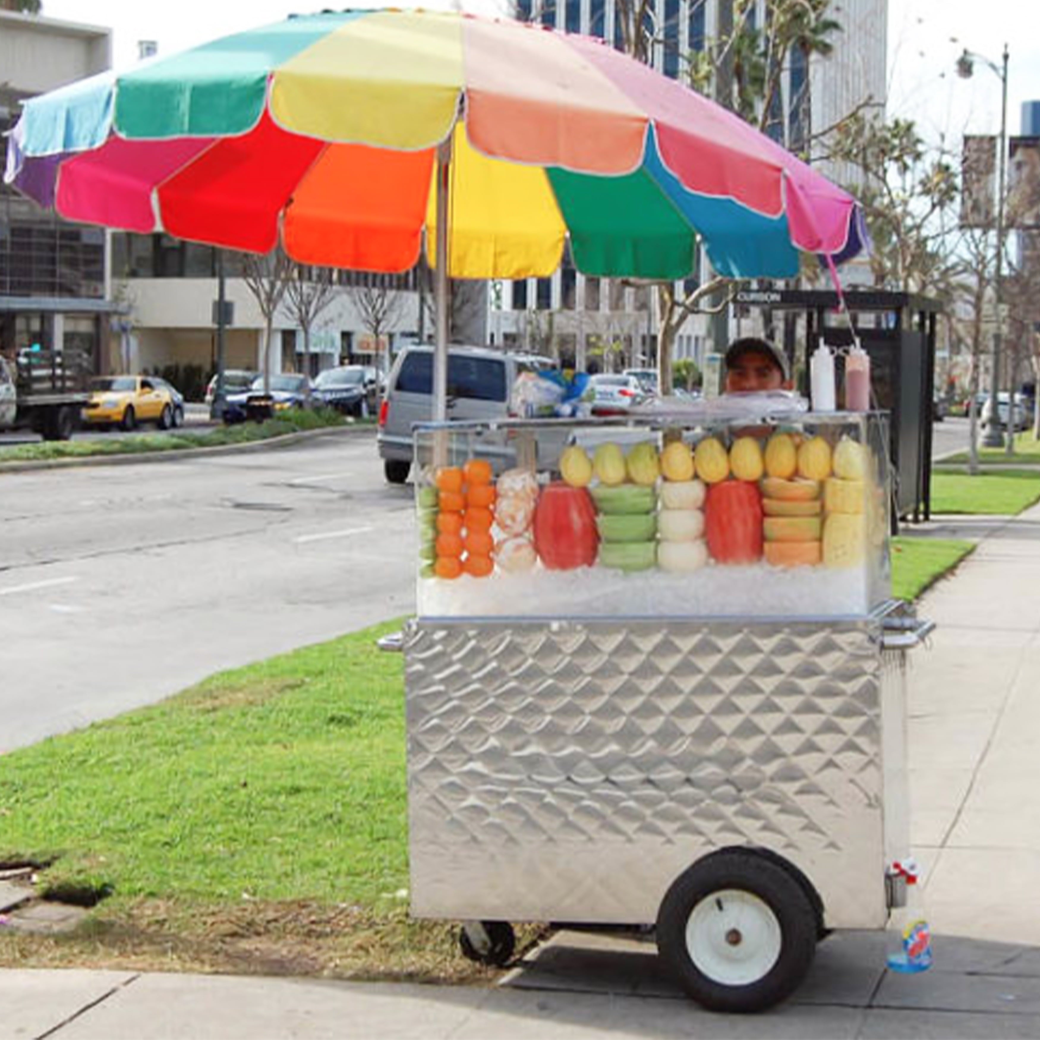 This vibrant umbrella is the perfect addition to your 44” Commercial Street Vendor Carro De Fruta Fruit Cart Concession Stand. The colorful design will attract customers and provide shade on sunny days, making it both practical and eye-catching.