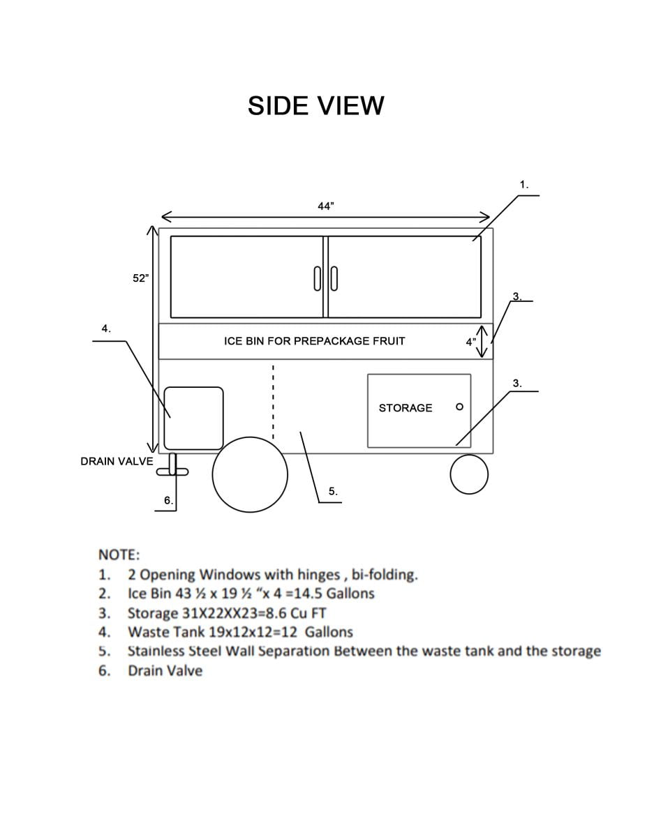 - Waste water tank 16” x 12”x12”=12 Gallon 1/3 of ice bin