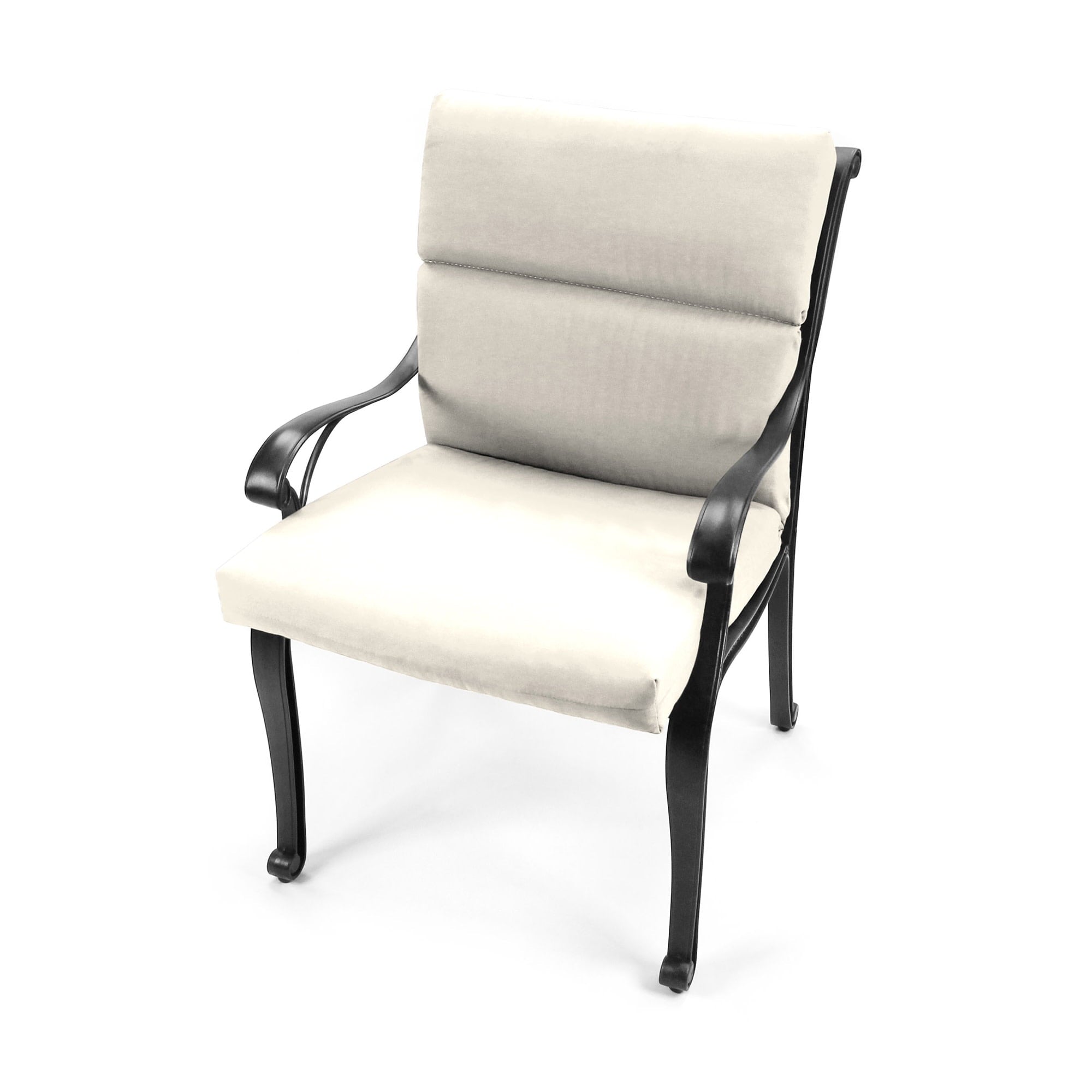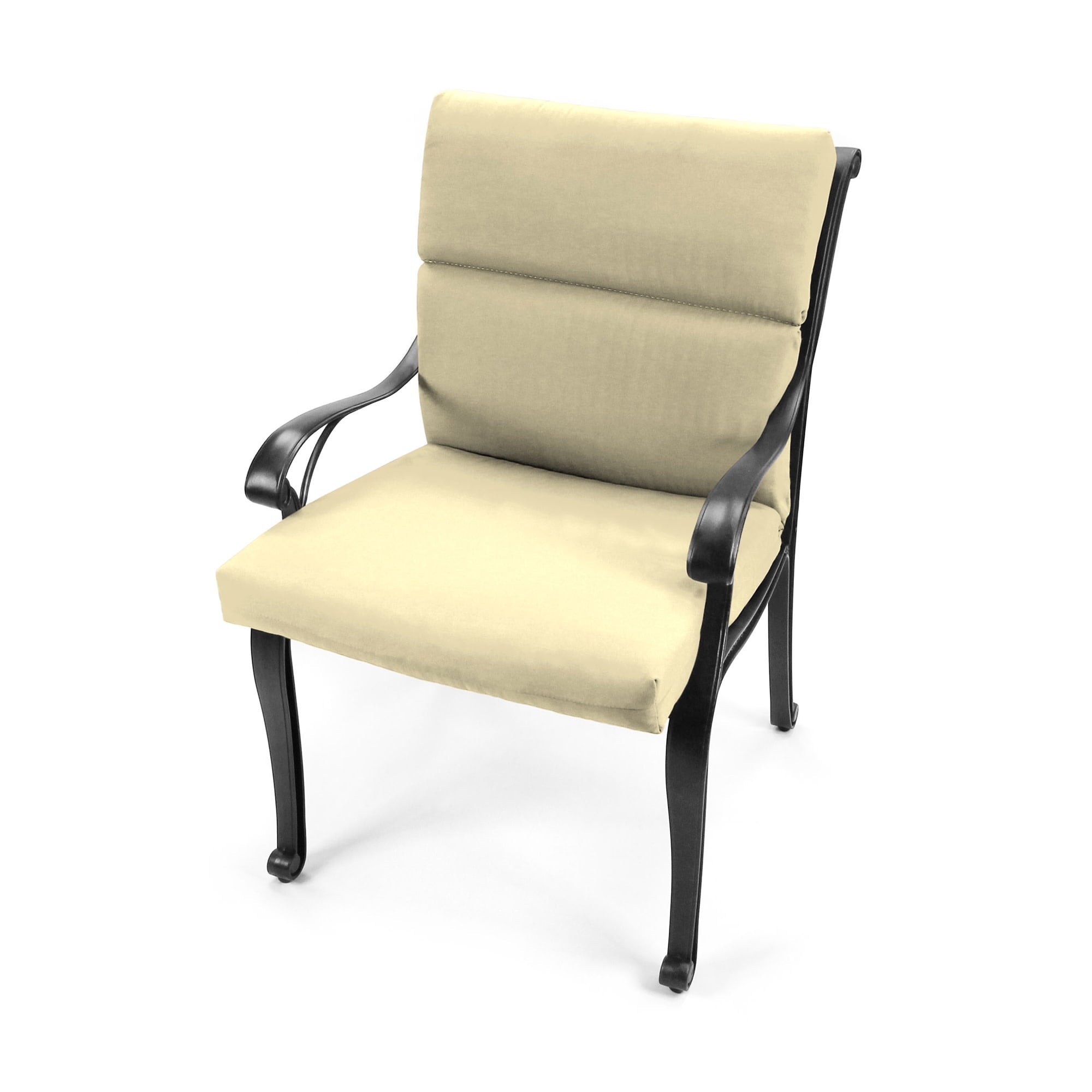 • Set of two 1-piece outdoor chair cushions. Overall dimensions 22″ width x 44″ length x 4″ thick; Back 22″ height; Seat 22″ depth