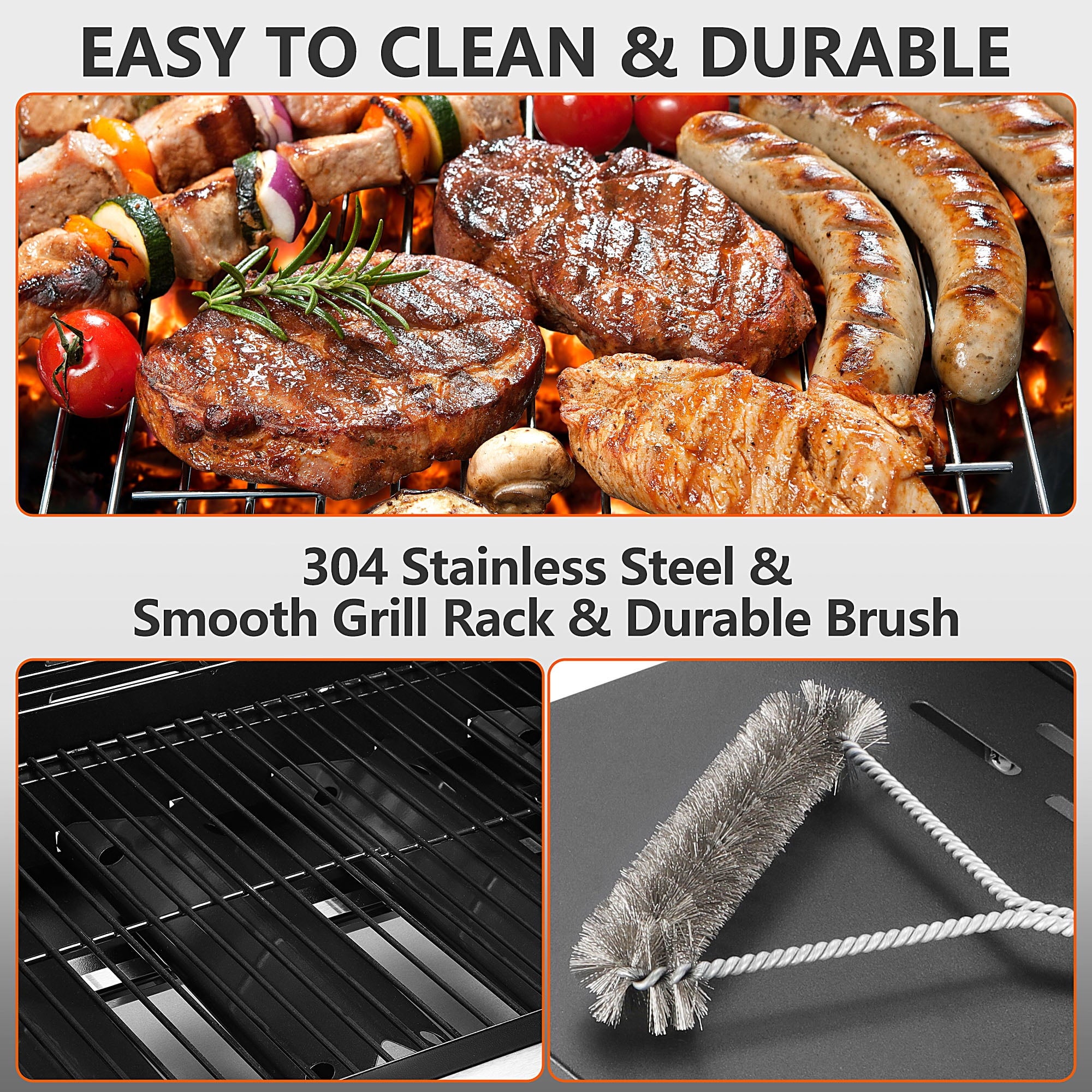 - 【EASY TO CLEAN】- Constructed with stainless steel materials, the smooth surface makes it easy to clean. A durable steel cleaning brush is included for targeted cleaning of the grill.