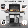 - 【REASONABLE DESIGN】The whole Stainless steel control panel with chromium plating control knob makes this propane gas grill more study and delicate, a stainless steel handle and a built-in stainless steel thermometer on the cover lid, two tables and 4 casters for storage and moving.