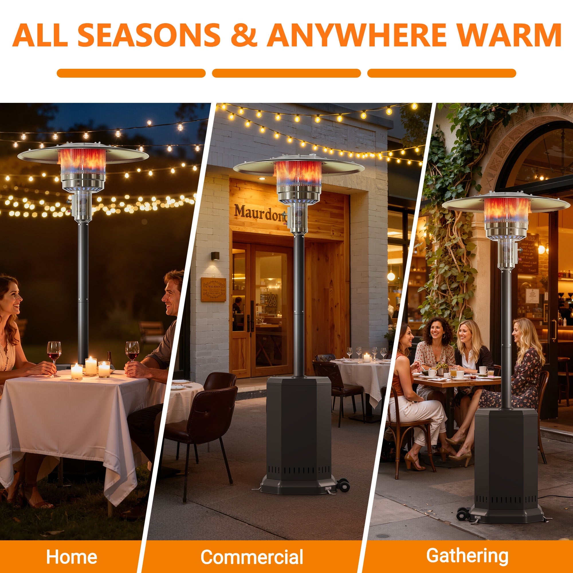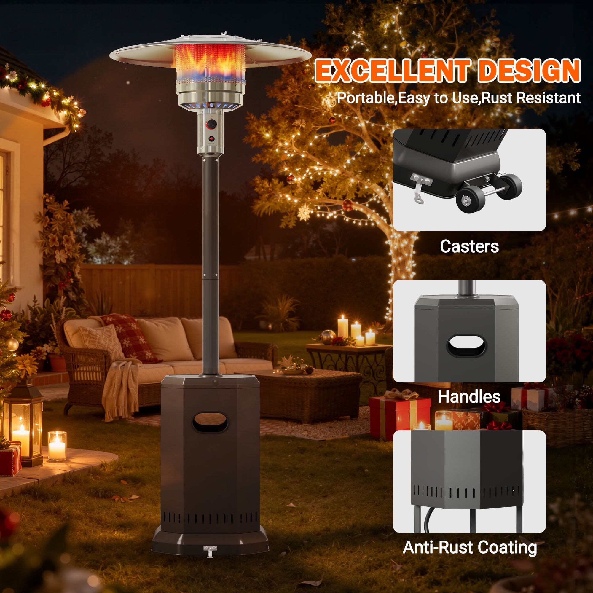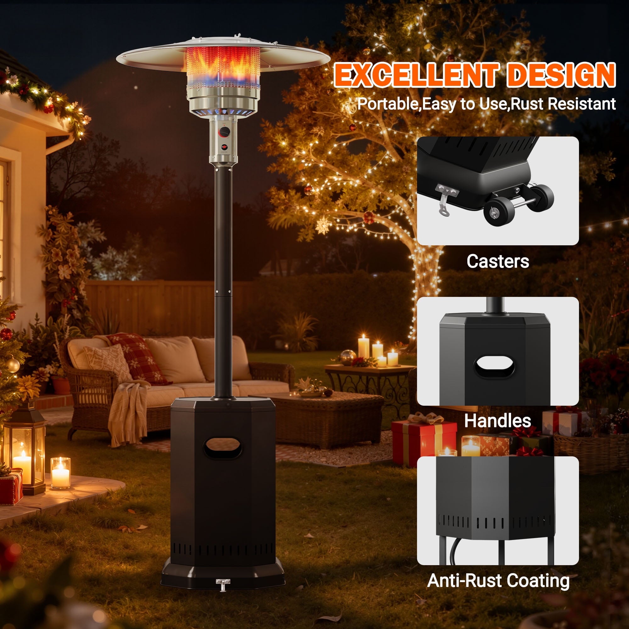 - ☀️Good Stability – Outdoor propane heaters have 3 grounds for better stability. For safety, the heater base is secured with support arms to enhance its stability.