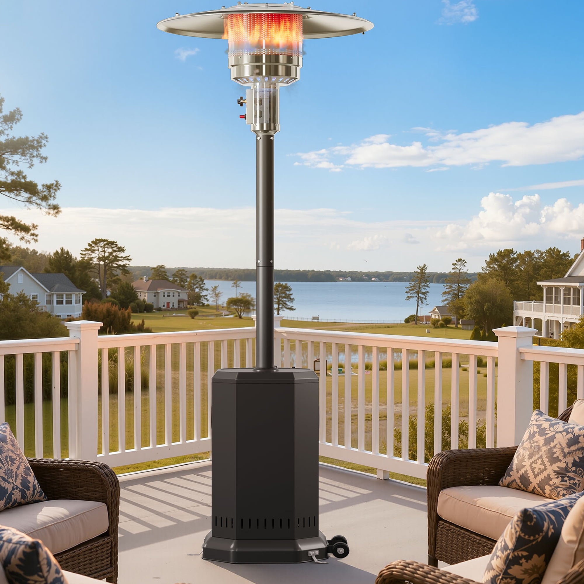- ☀️With Wheels Design – Patio heater for outdoor use removable wheels at the bottom, you can more easily place your patio heater wherever you want to heat.