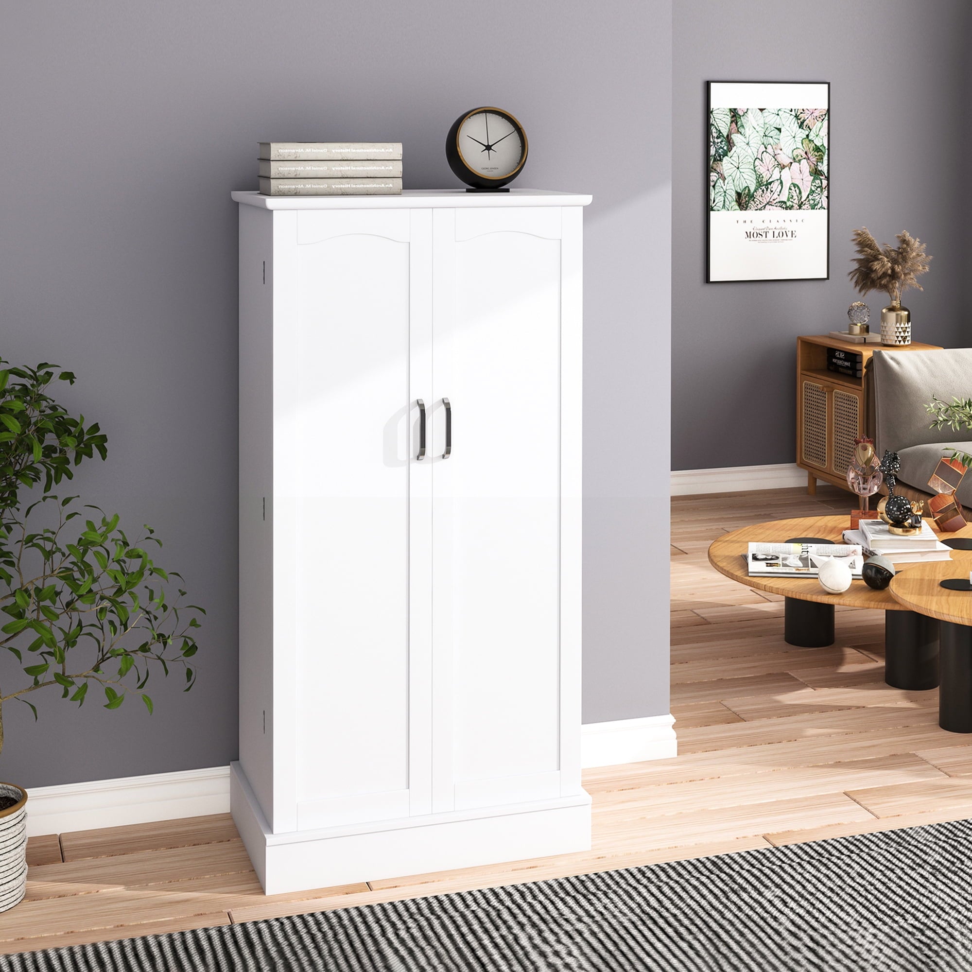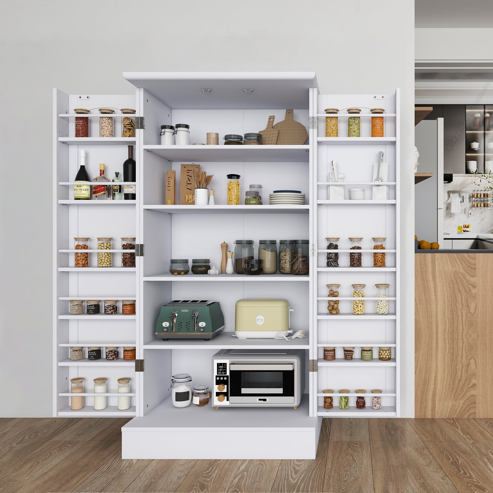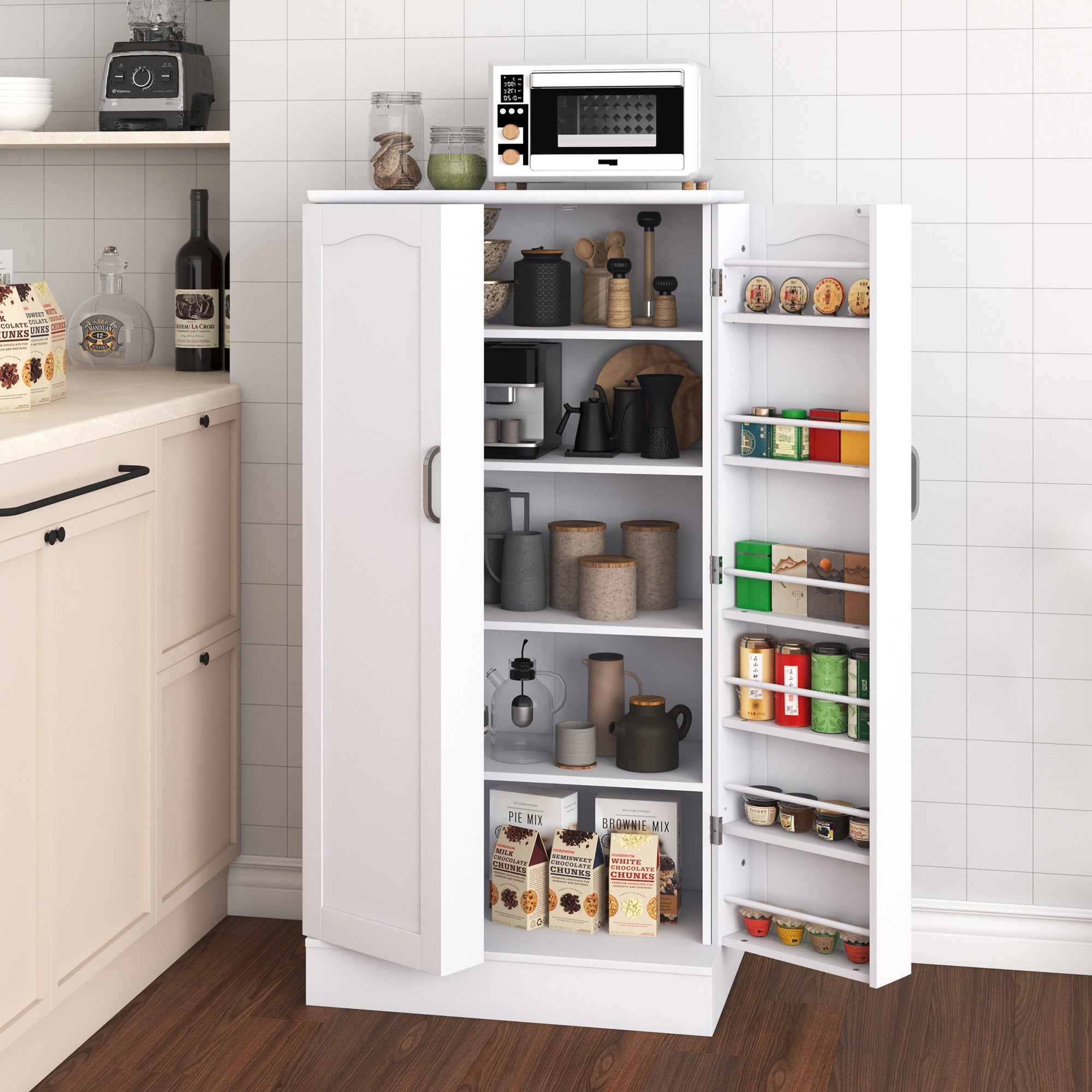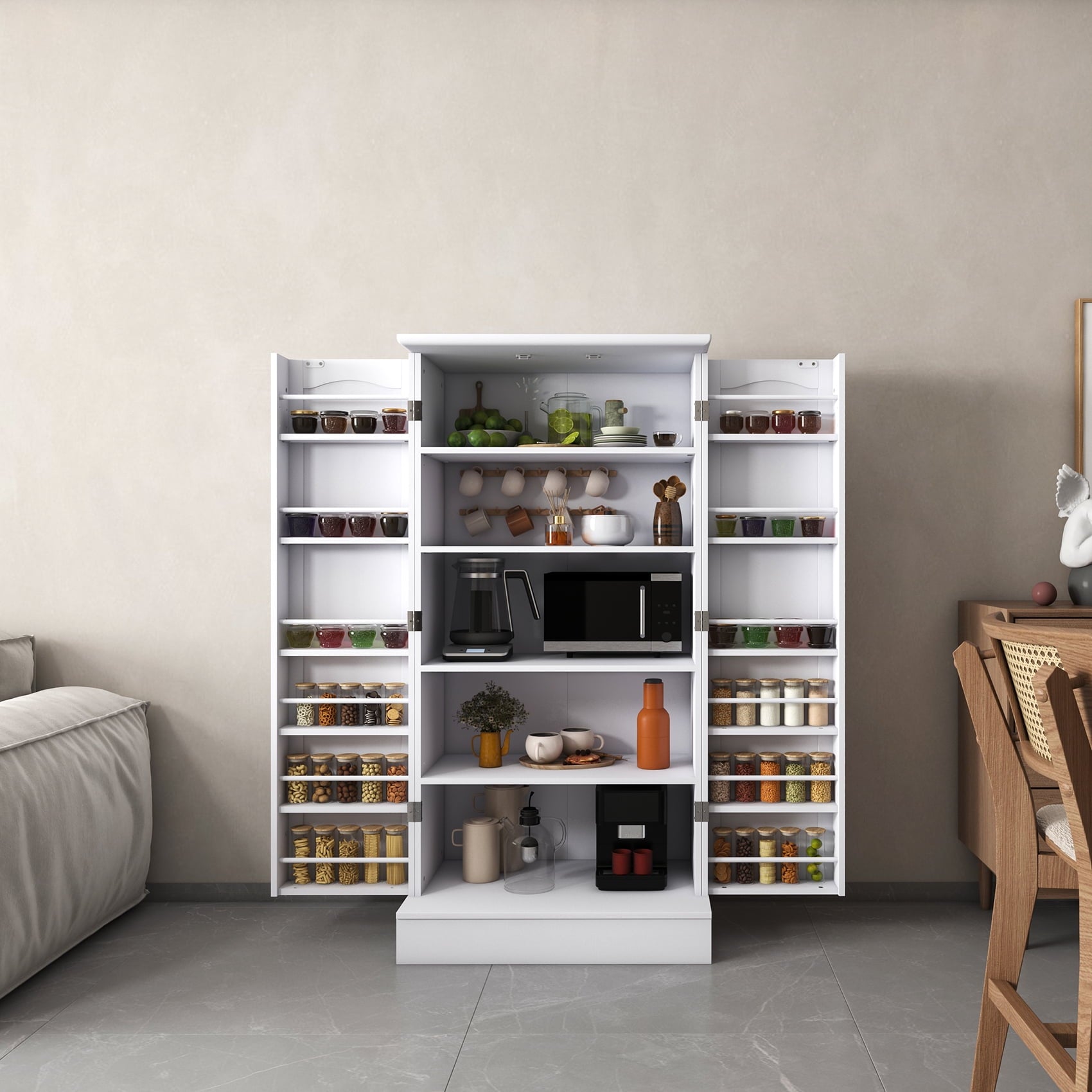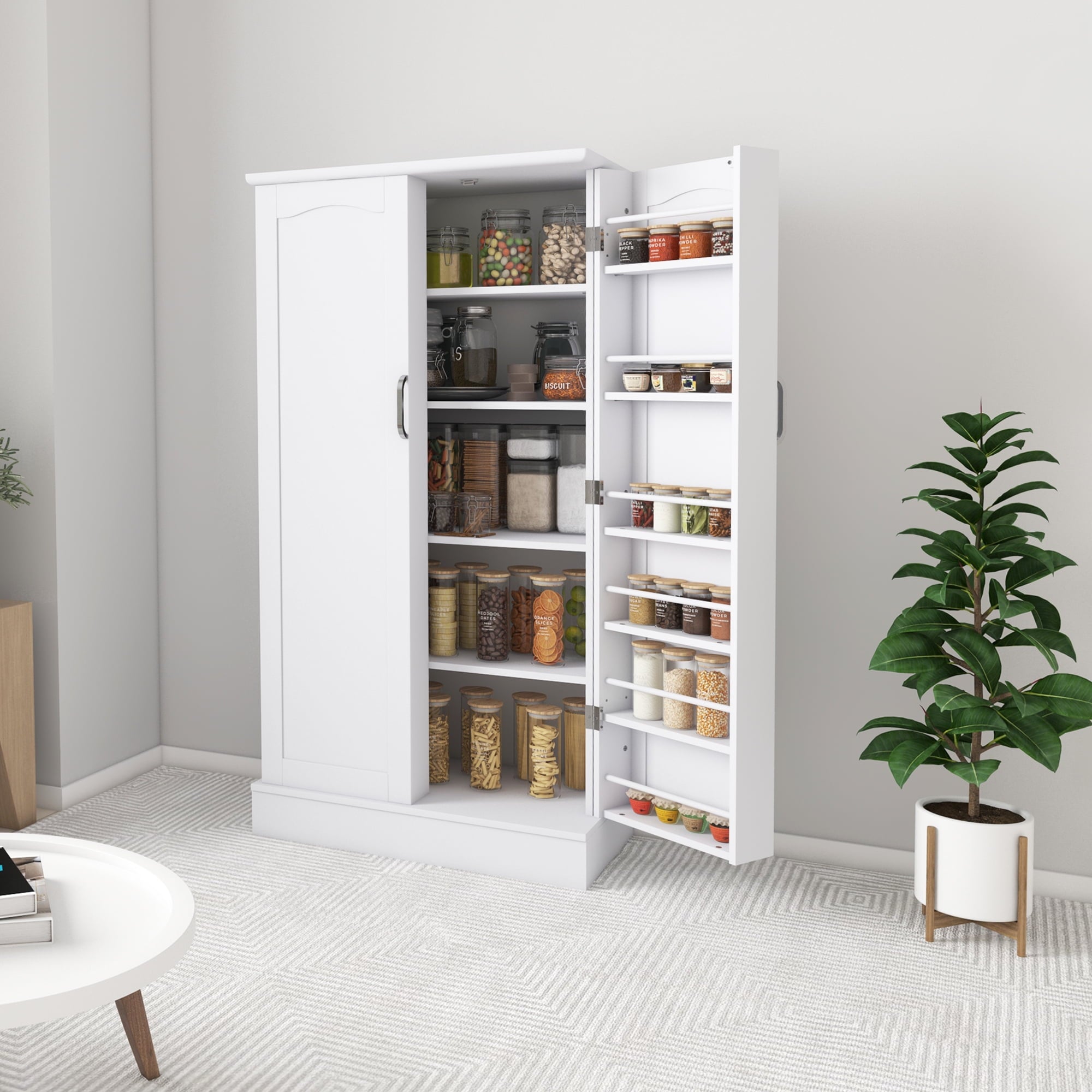 - 🍗🥃【Fashion Unique Design】This white pantry organization and storage has an elegant and smooth white finish and beautifully flowing lines, exuding an air of sophistication and elegance! Whether your home is decorated in a modern or retro style, this food pantry cabinet fits perfectly and reflects your extraordinary taste!