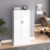 - 🍗🥃【Stable & Environmental friendly】This freestanding kitchen pantry storage cabinet, made of fiberboard, have an elegant smooth white finish that is not only good looking but also of high quality, with a widened and weighted base giving it more stability. It is worth mentioning that the paint we use is environmentally friendly, so you don’t have to worry about toxic or irritating odors.