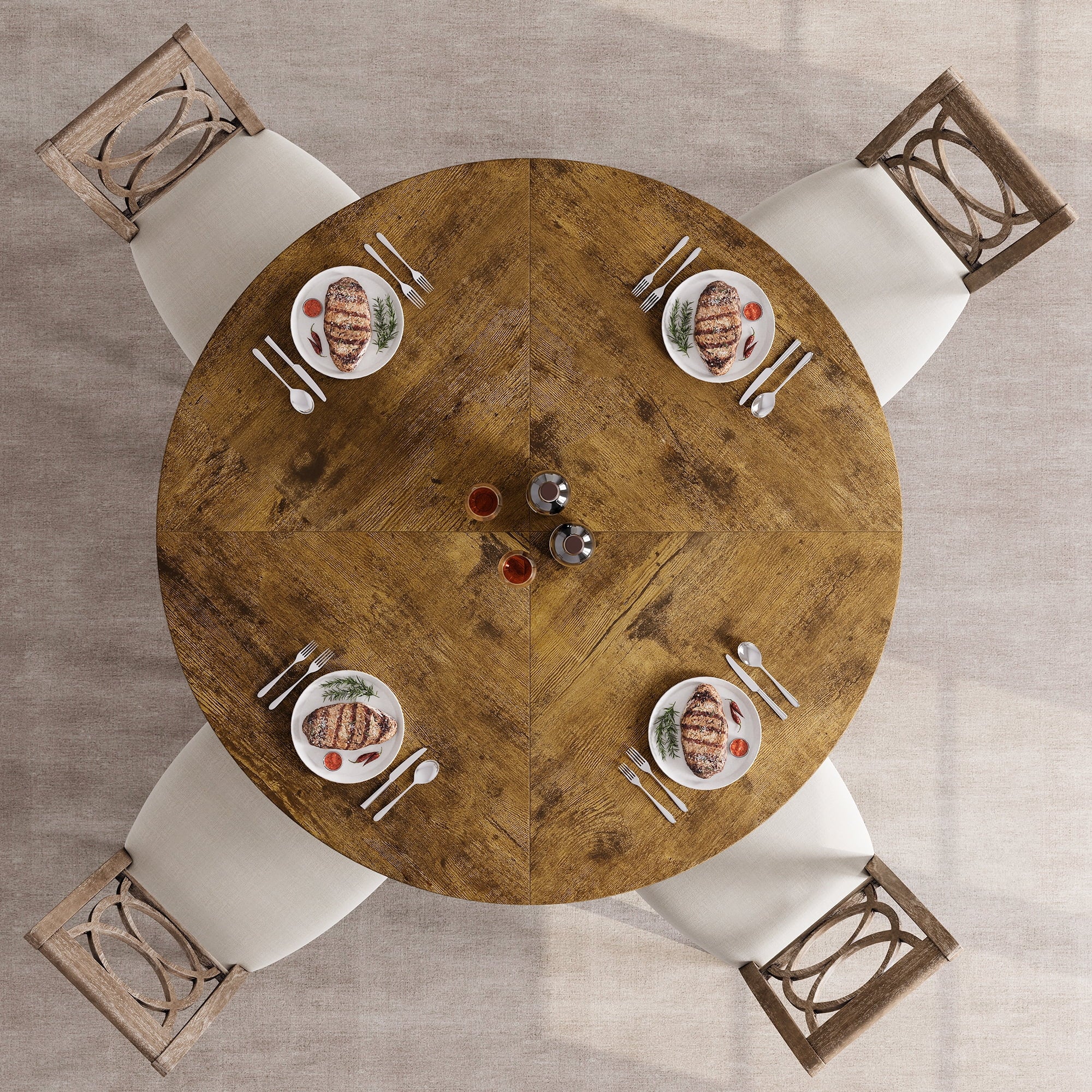 - Farmhouse Style: The natural texture of the wood dinner table adds a sense of tranquility to any space, creating a calming atmosphere; the antique design introduces an artistic touch, making the round dining table a striking focal point in your home
