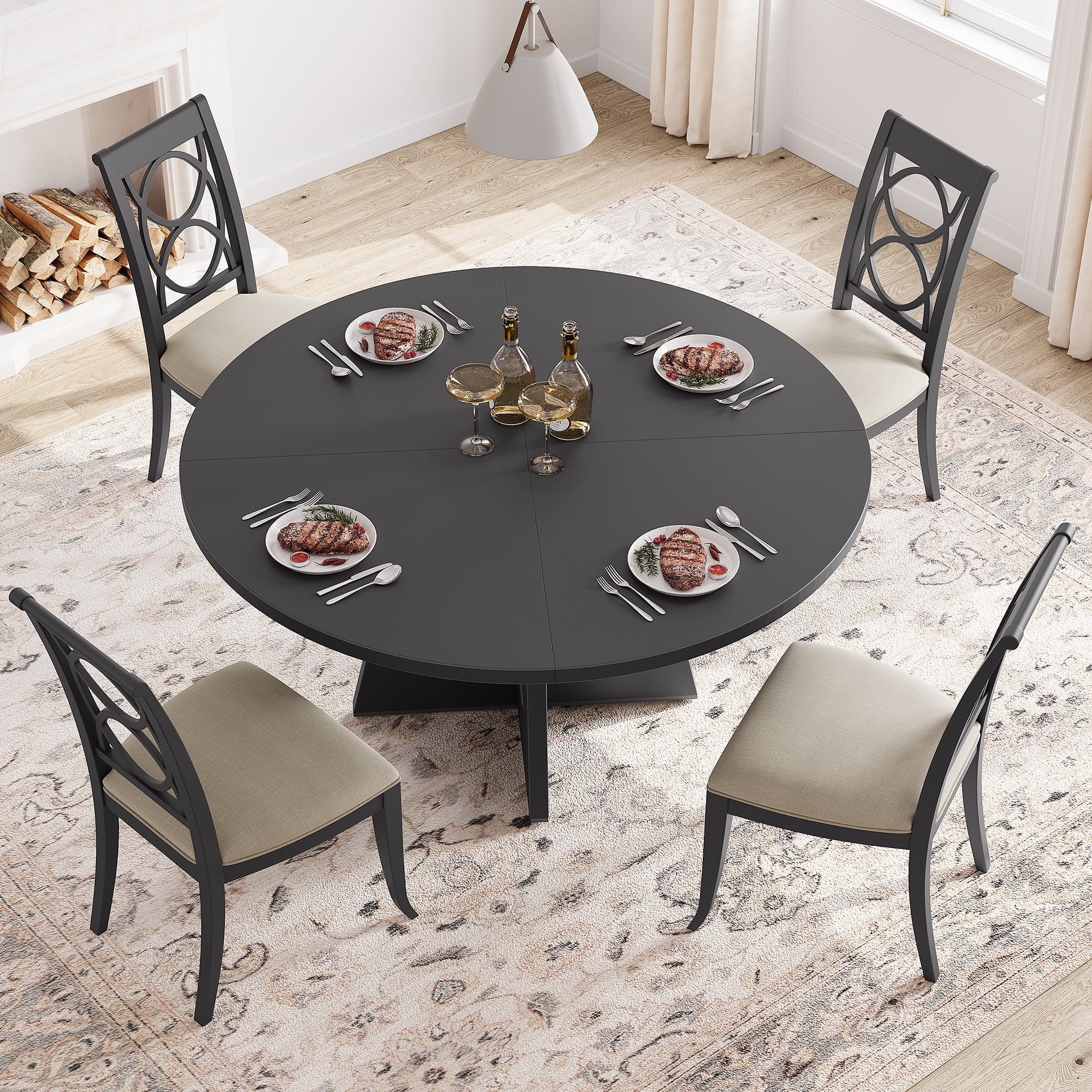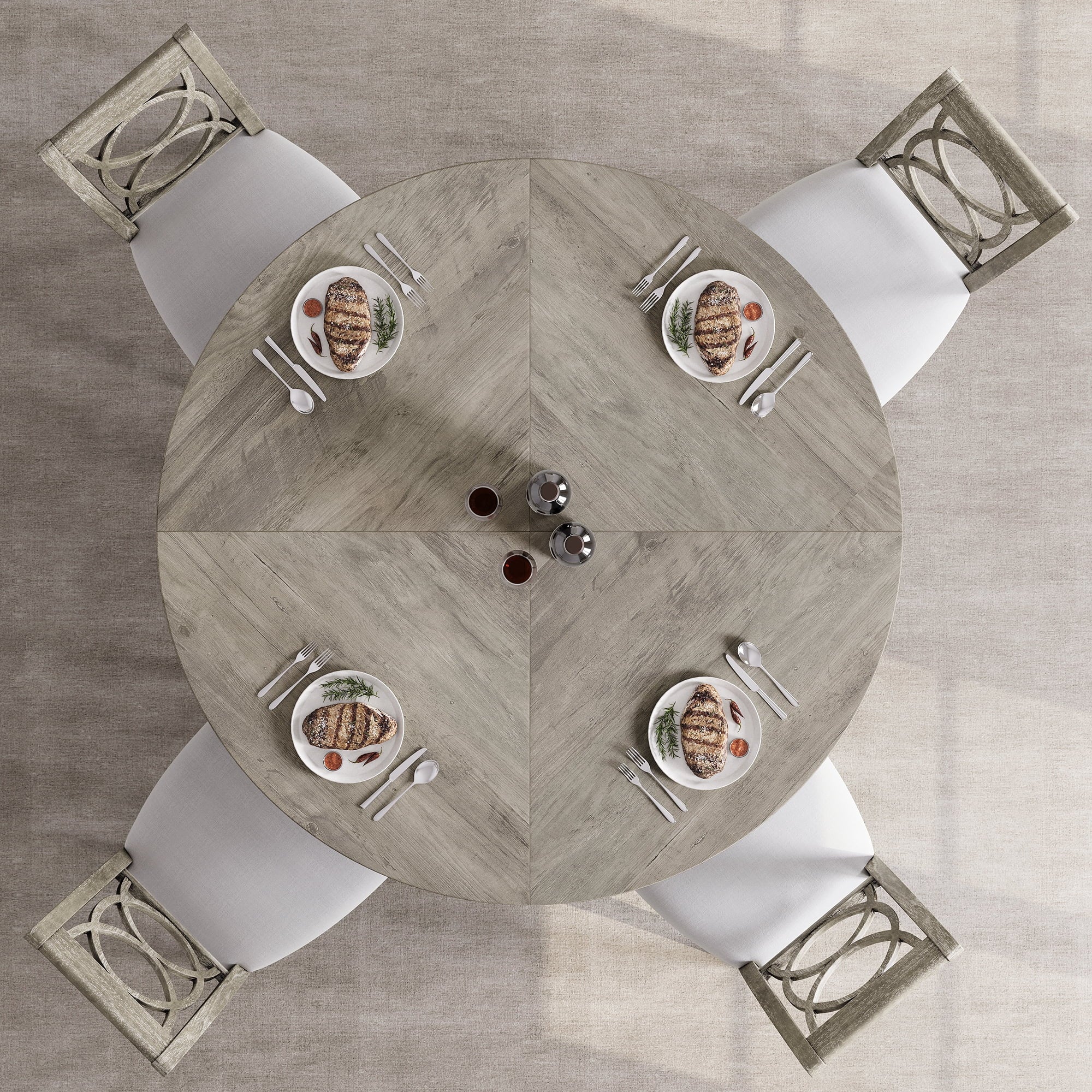 3.Measuring 47” in diameter, this dining room table is perfectly sized for intimate dinners or larger gatherings. Comfortably seating 4-6 people.
