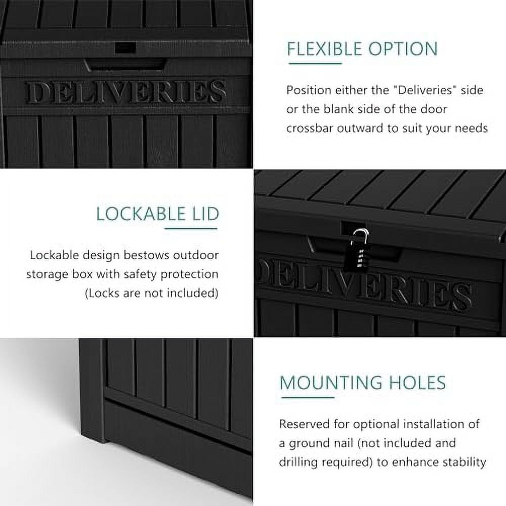 Home Mailboxes 48 Gallon Large Package Delivery Box,Storage Box with Lockable Secure,Double-Wall Resin Outdoor Package Delivery and Waterproof Deck Box for Porch, Curbside (Black)