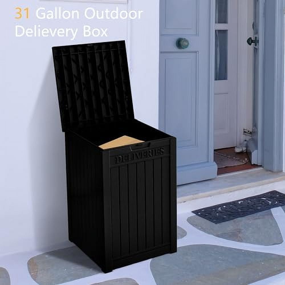 48 Gallon Large Package Delivery Box,Storage Box with Lockable Secure,Double-Wall Resin Outdoor Package Delivery and Waterproof Deck Box for Porch, Curbside (Black)