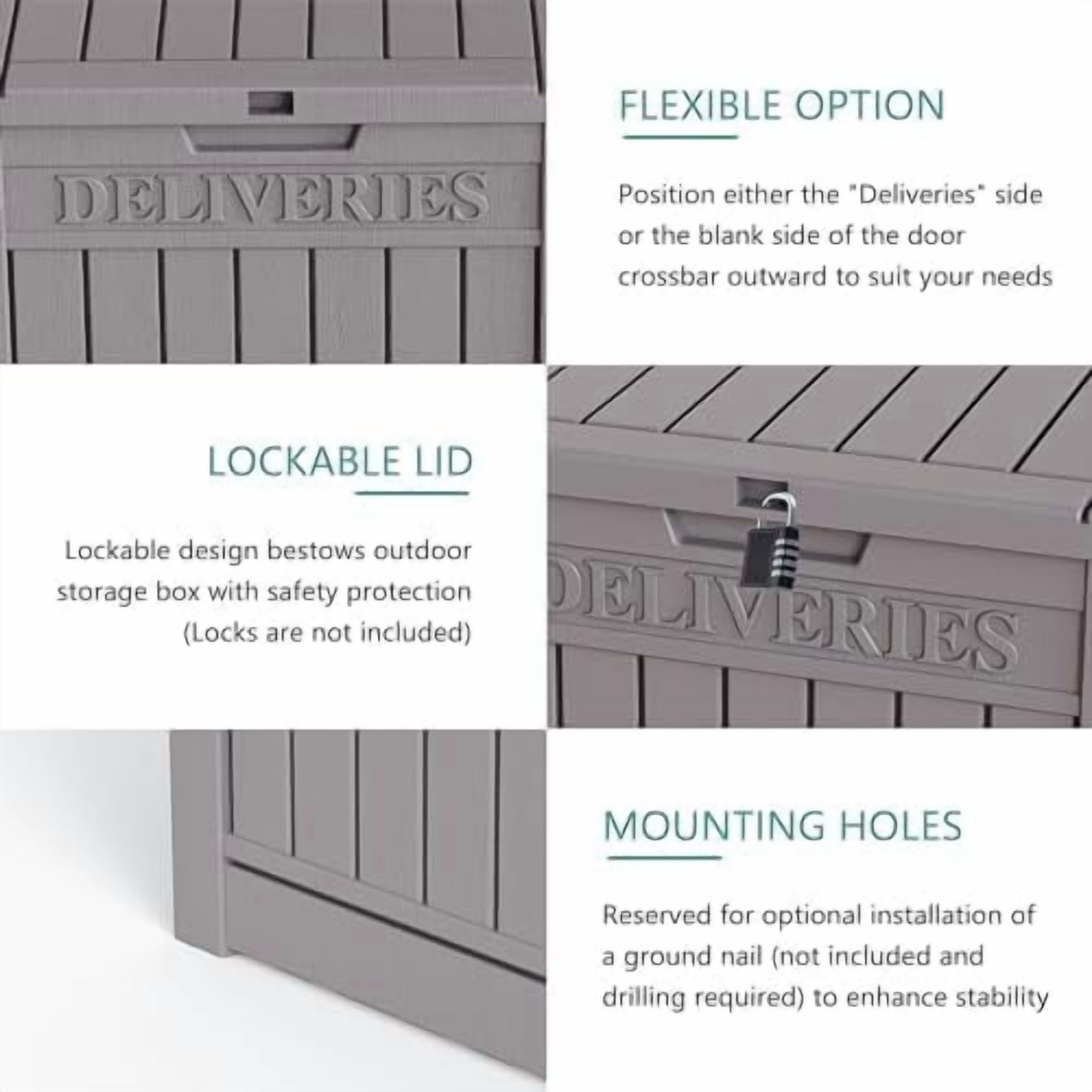 Aesthetically pleasing and practical – The carefully designed wood grain exterior not only adds to the beauty of your home décor, but also the “DELIVERIES” logo is clearly visible, making it easy for the courier to deliver accurately and adding a sense of warmth to your home environment