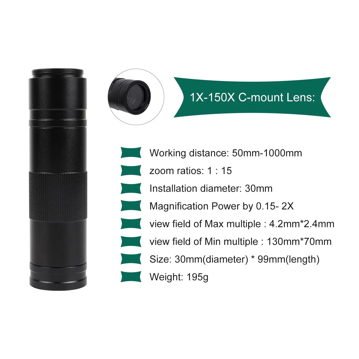 1X-150X C-mount Lens: