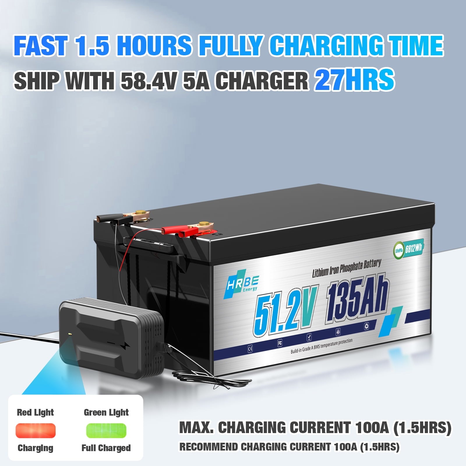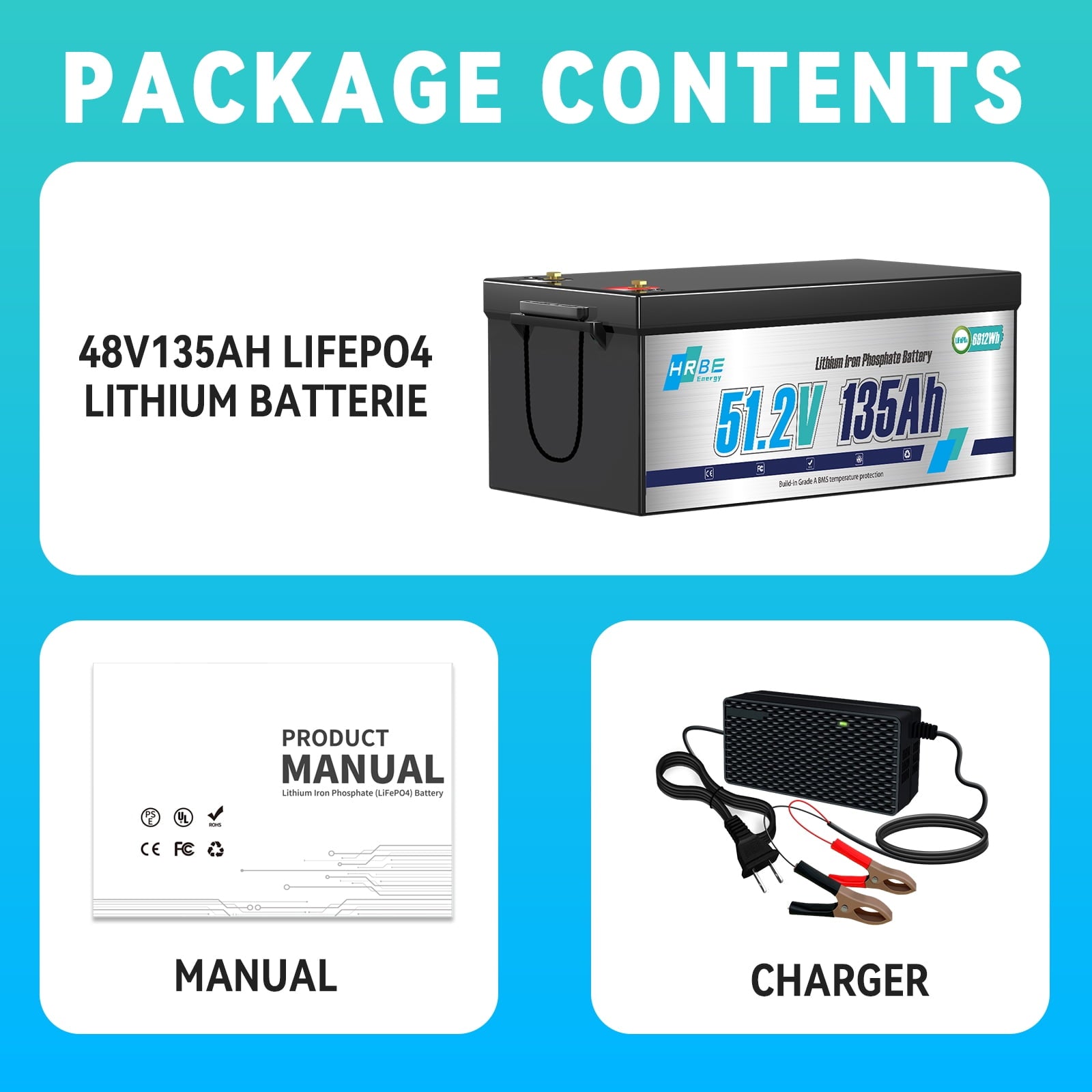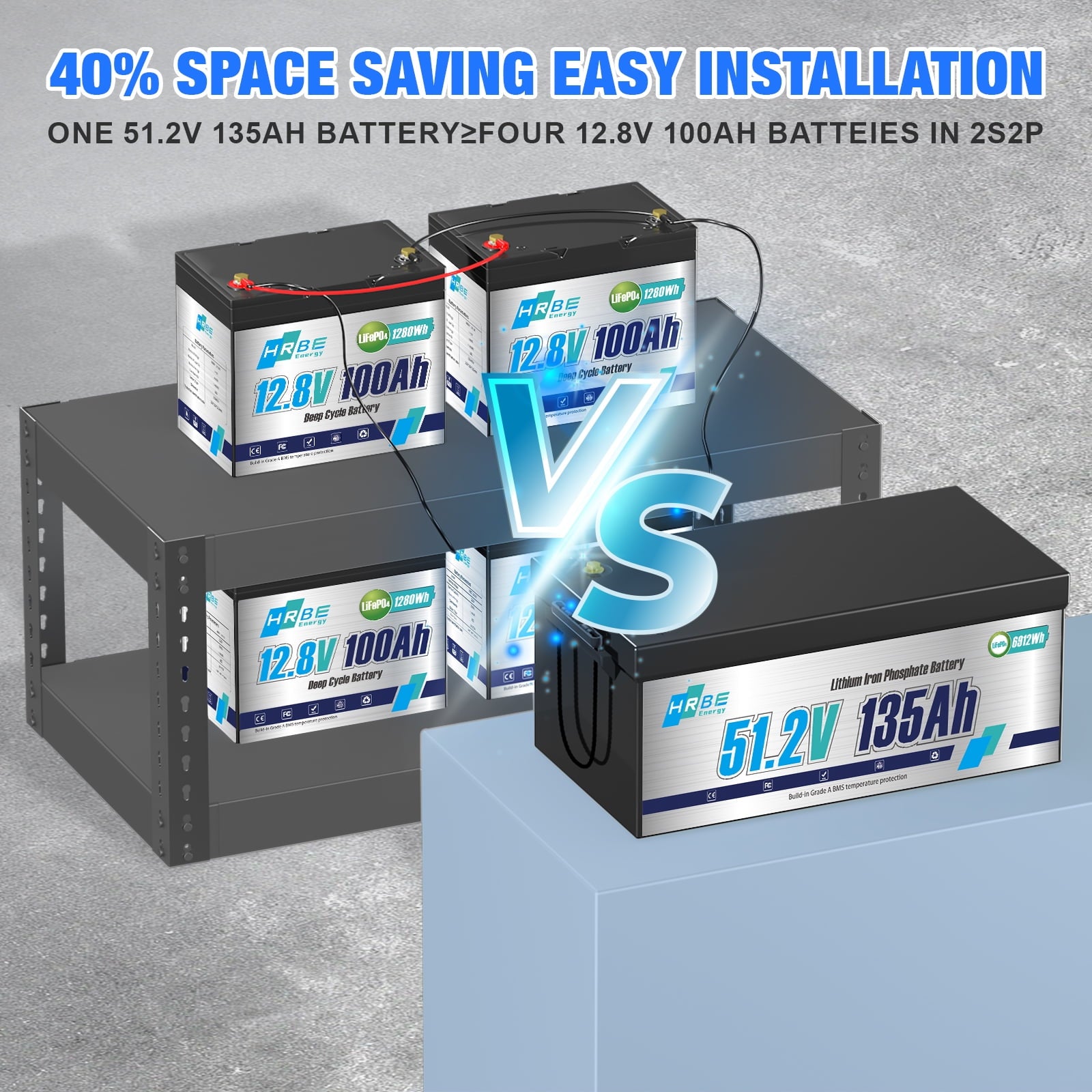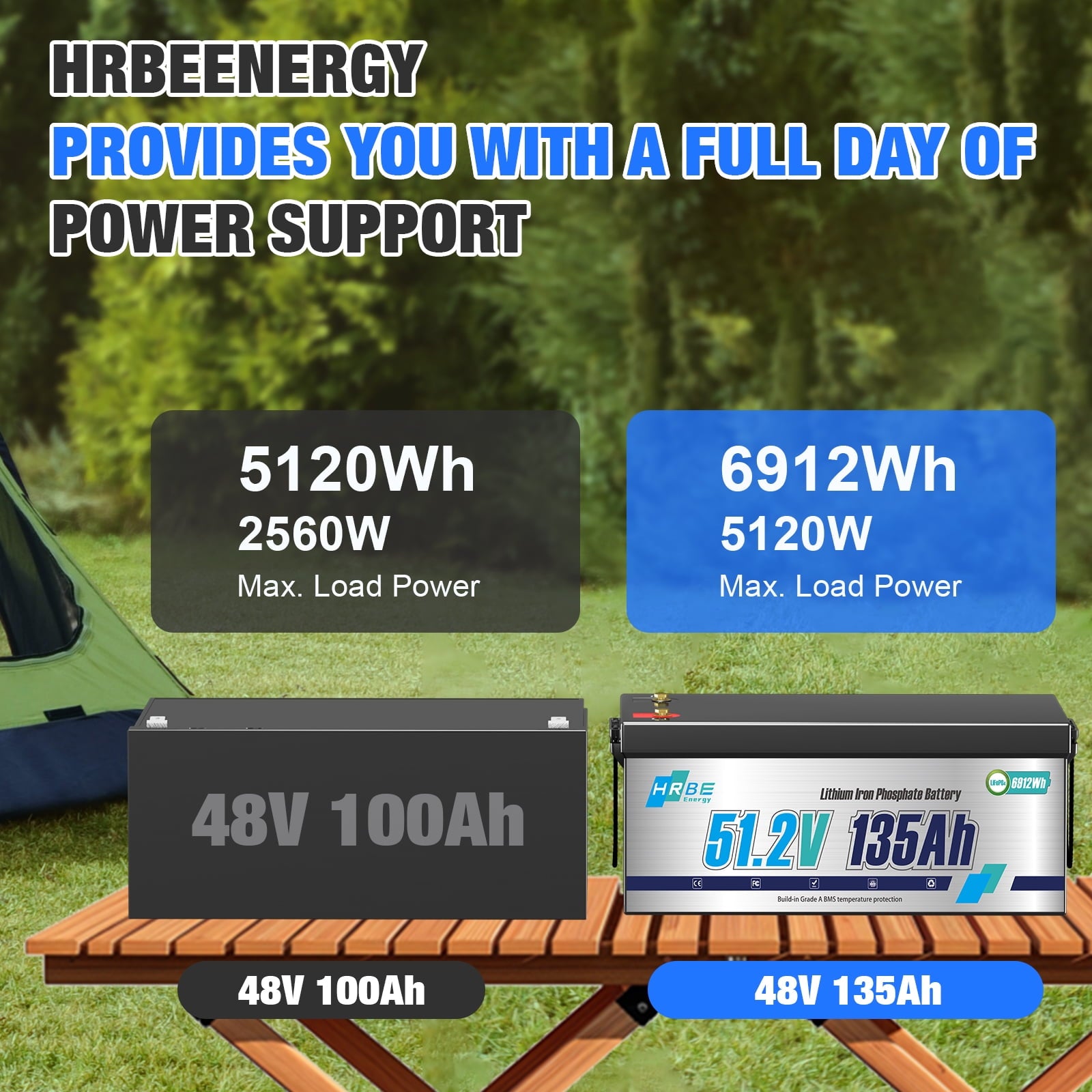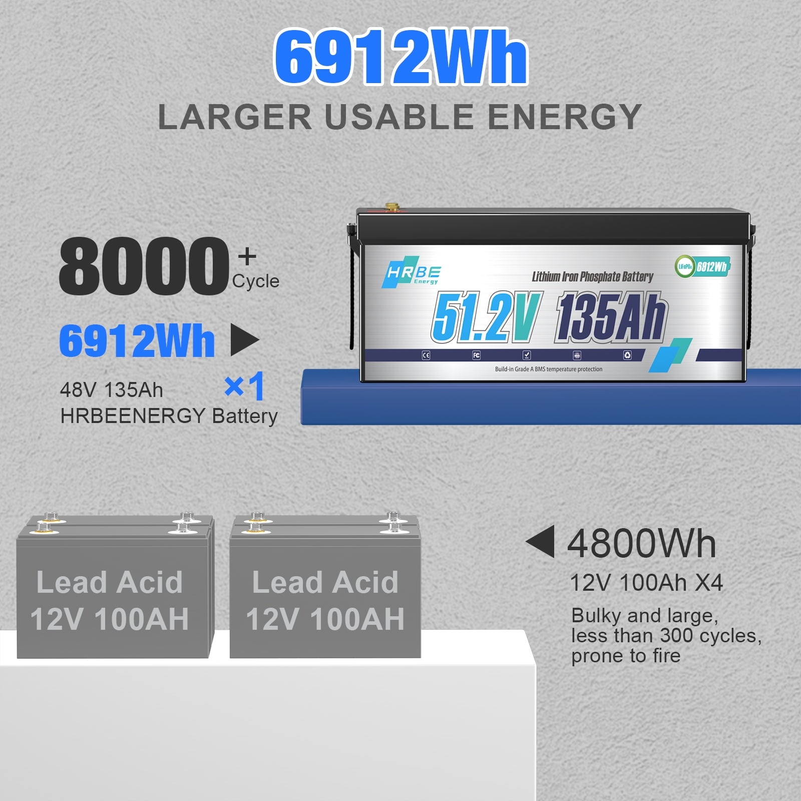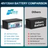 - HRBEENERGY 48V 135Ah LiFePO4 battery provides more than 6000 deep cycles compared to traditional lead-acid batteries only about 300-600 cycles, which extends the battery lifespan more than 10 times. 6000+ deep cycles using life and 80% depth of discharge are also better than many LiFePO4 battery of other brands.