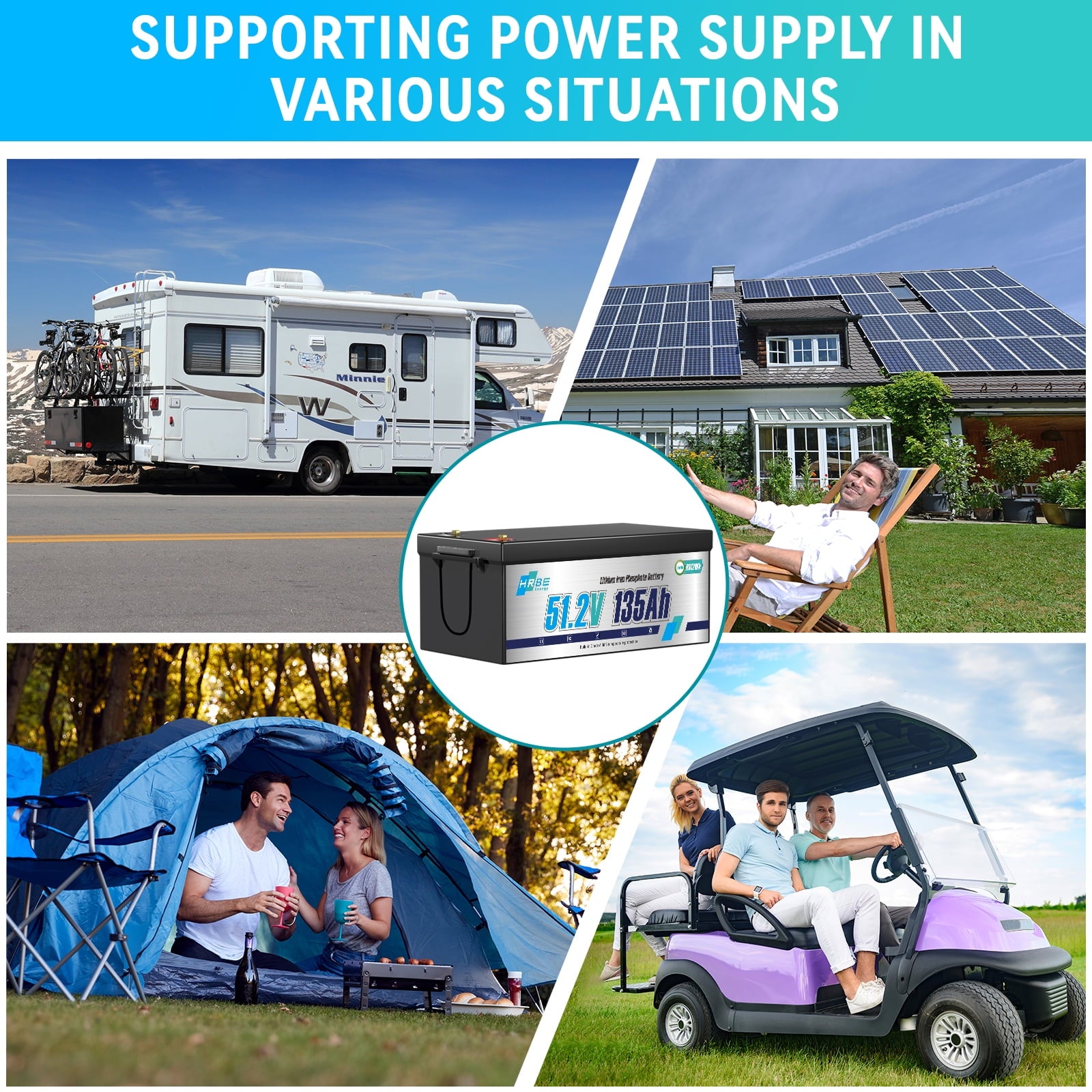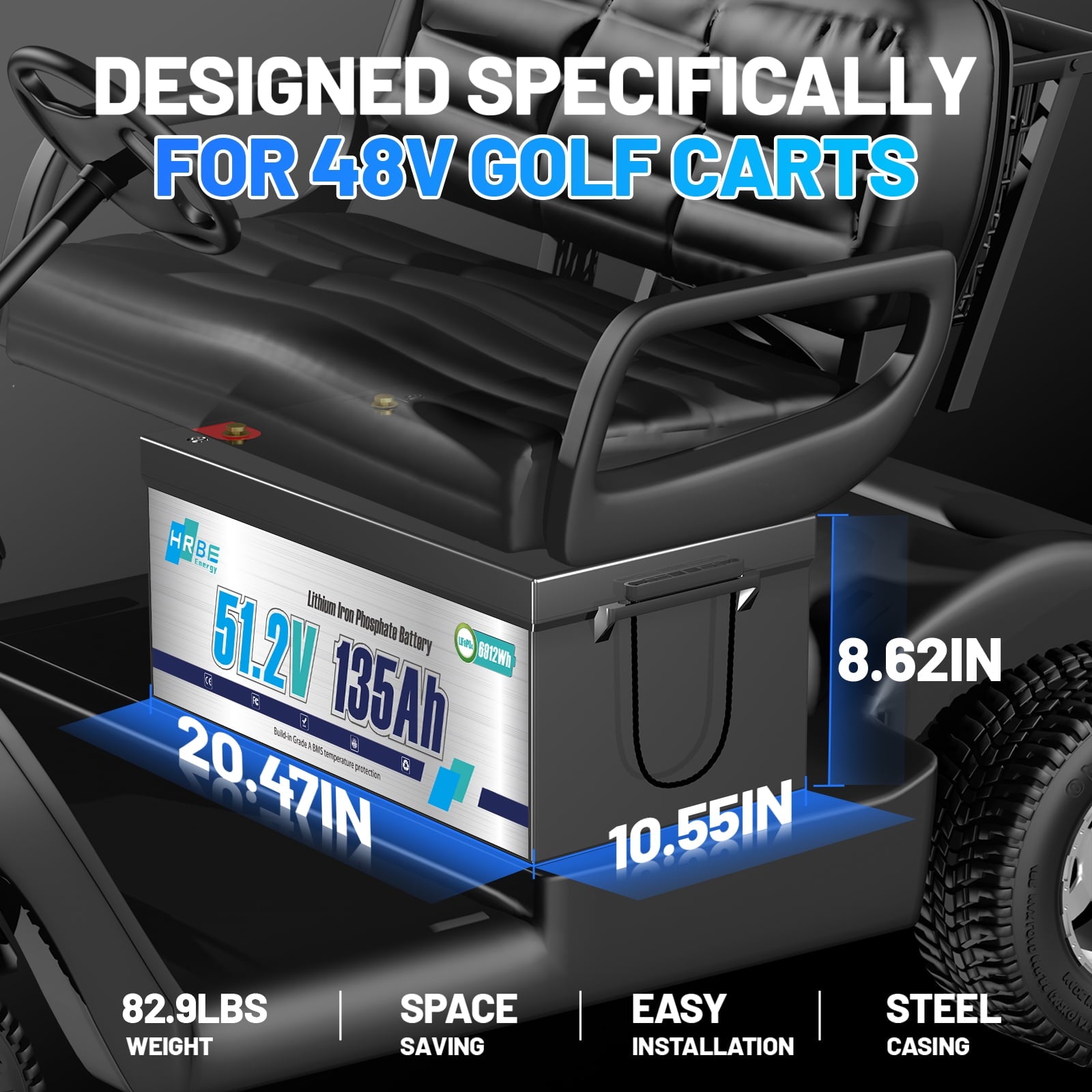 - HRBEENERGY golf cart 48V 135Ah batteries are designed for 48V golf carts, utilizing high-density A-grade cells for high energy(Support 2C Discharge) and performance,The battery case is made of ABS, which is fireproof shockproof and IP67,Compatible with all major brands of golf cart controllers on the market,they are ideal for golf carts,electric vehicles,Trolling Motor,marine engines and other applications.