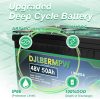DJLBERMPW 48V50Ah LiFePO4 battery has 2.56kWh higher energy, fast charge and discharge, making your battery system operation simpler. The battery is composed of Class A cells with stable performance, making this lithium battery have a service life of up to 10 years and more than 4000 deep cycles, making it a better choice for RV, trolling motors, boats and off-grid applications.