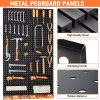 PEGBOARD WITH HOOKS KIT: The pegboard wall organizer comes with 4pcs metal pegboard panels and 156pcs pegboard accessories, 13 different type pegboard hooks including 12pcs updated pegboard bins, curved hooks, angled hooks, straight hooks, and ring tool holder, multi tool rack. Also steel peg lock to double fit the hooks
