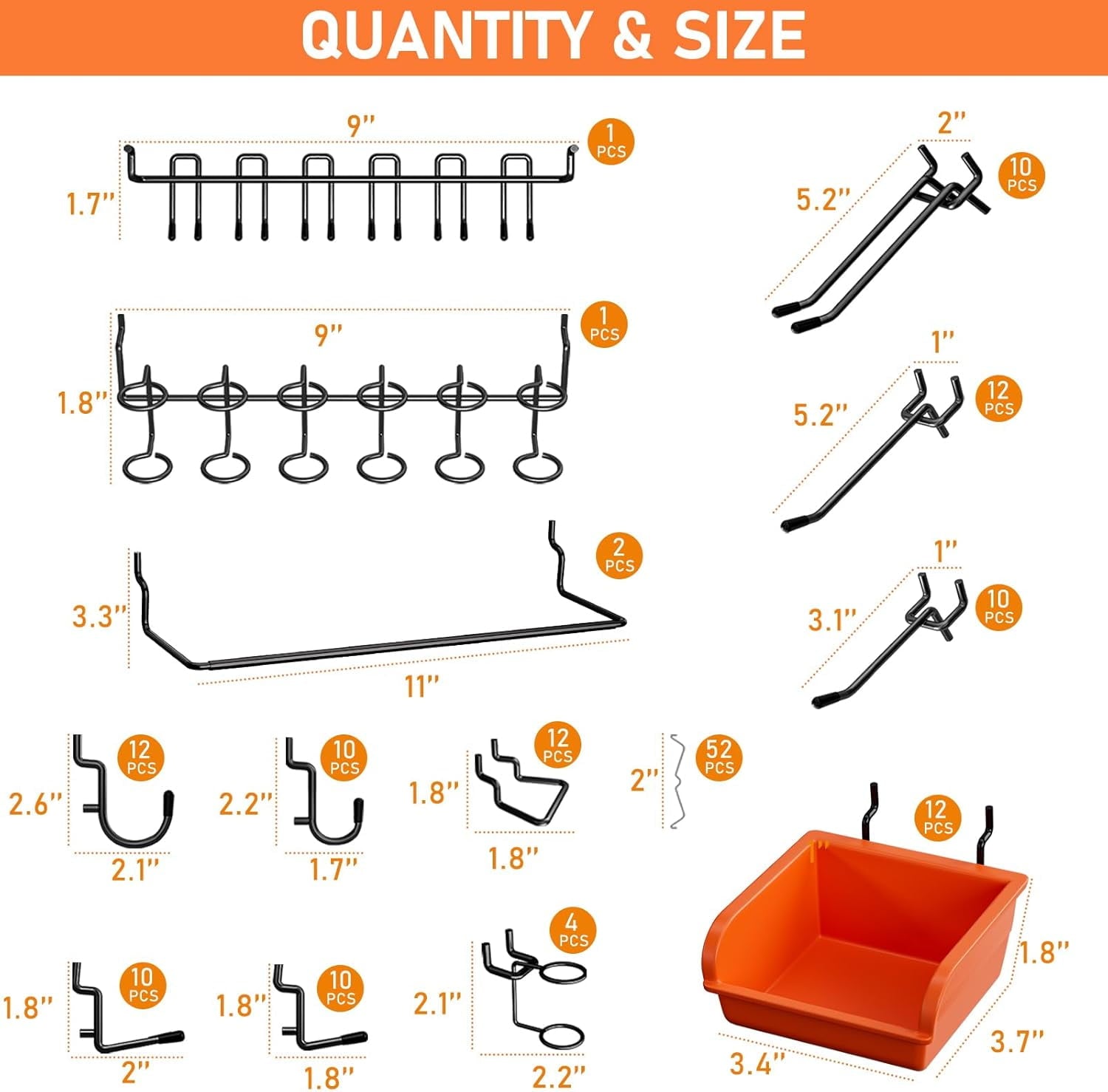 WIDE APPLICATION: This peg board organizer is ideal for storage solutions on a wide range of garage, workbench, workshop, kitchen, shop, school, tool sheds, factory, or warehouse. And the pegboard tool holders could be arranged in a compact style, save more space and get effortless accessible for a variety of small hardware or tool