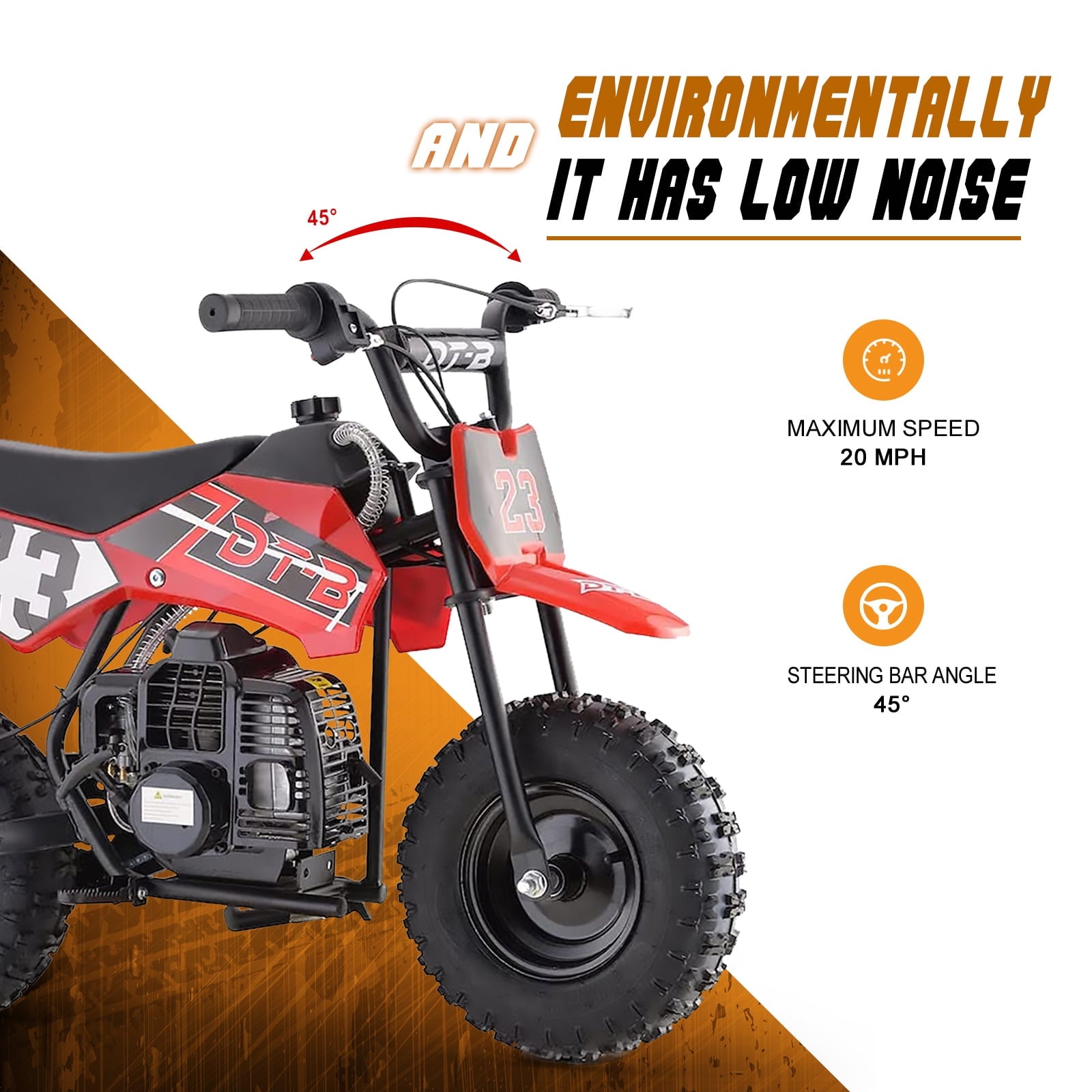 💪[49cc 2-Stroke Engine]: Our dirt bike is equipped with a 49cc 2-stroke engine, the mini moto can reach a top speed of 20MPH, so your children will enjoy this real and exciting feeling.