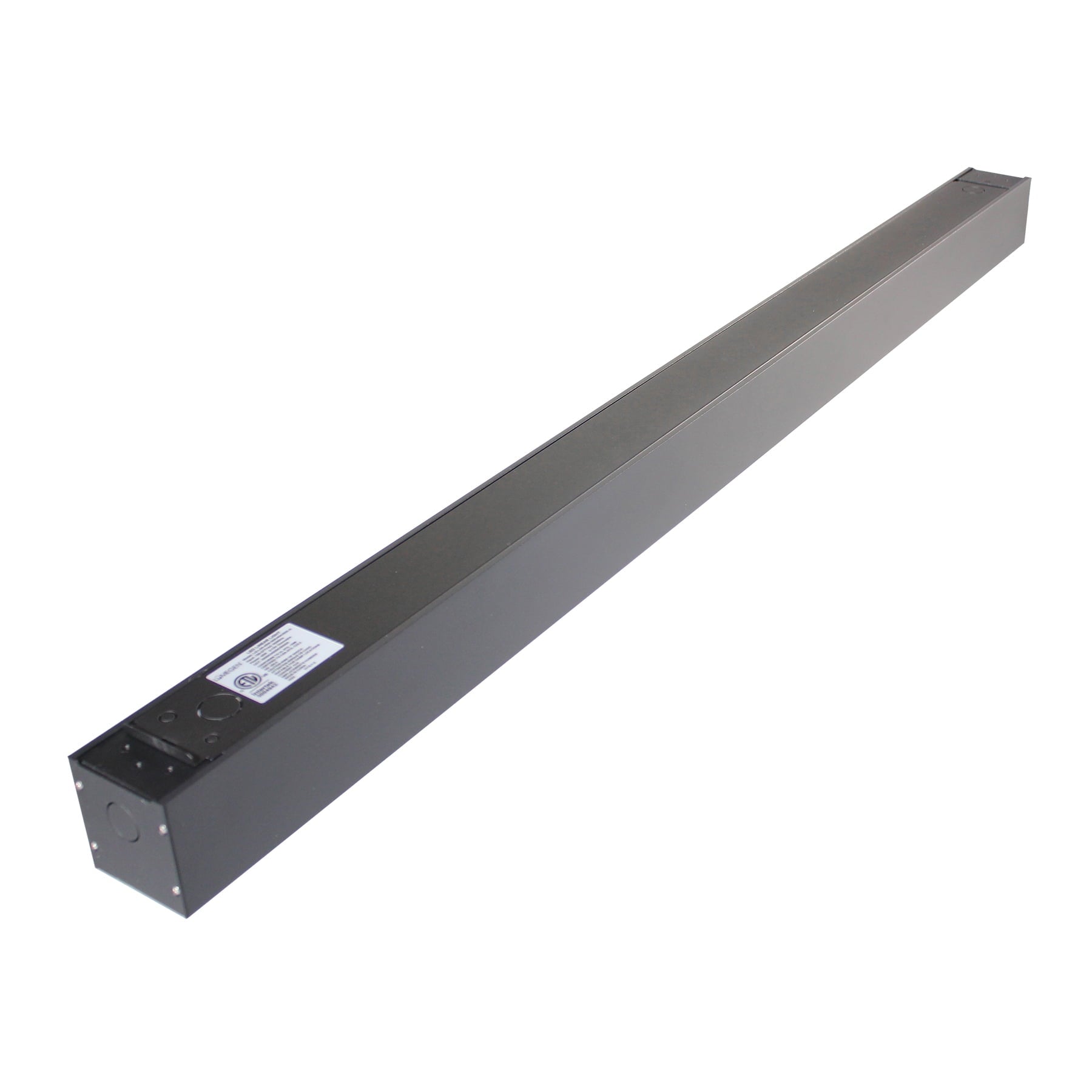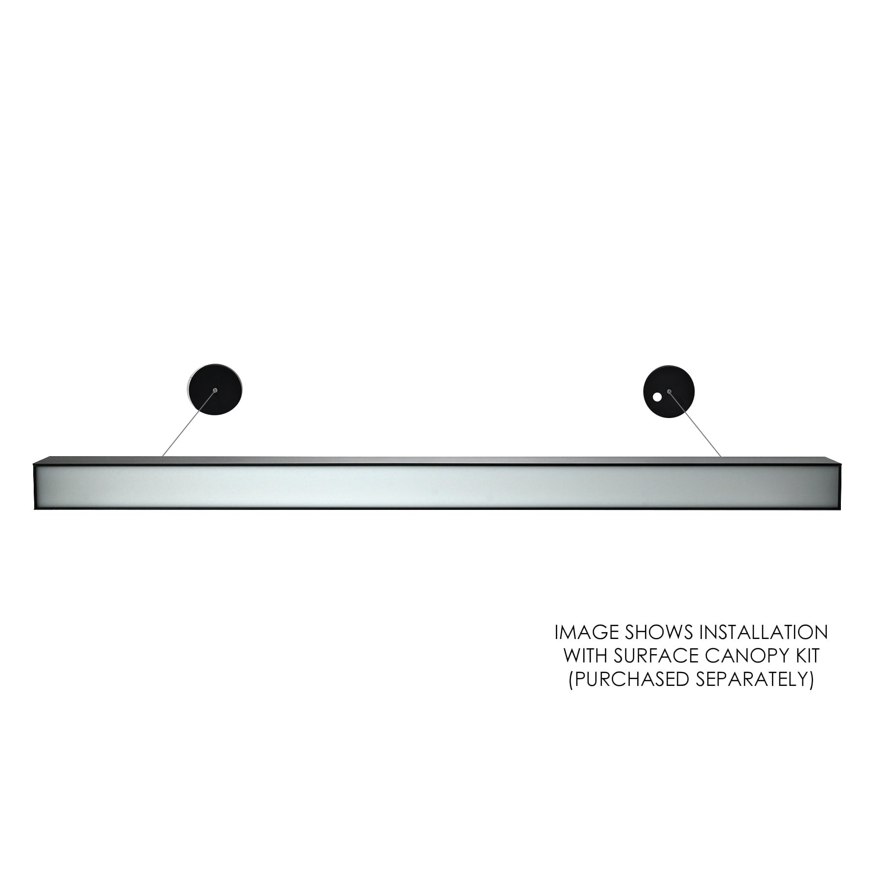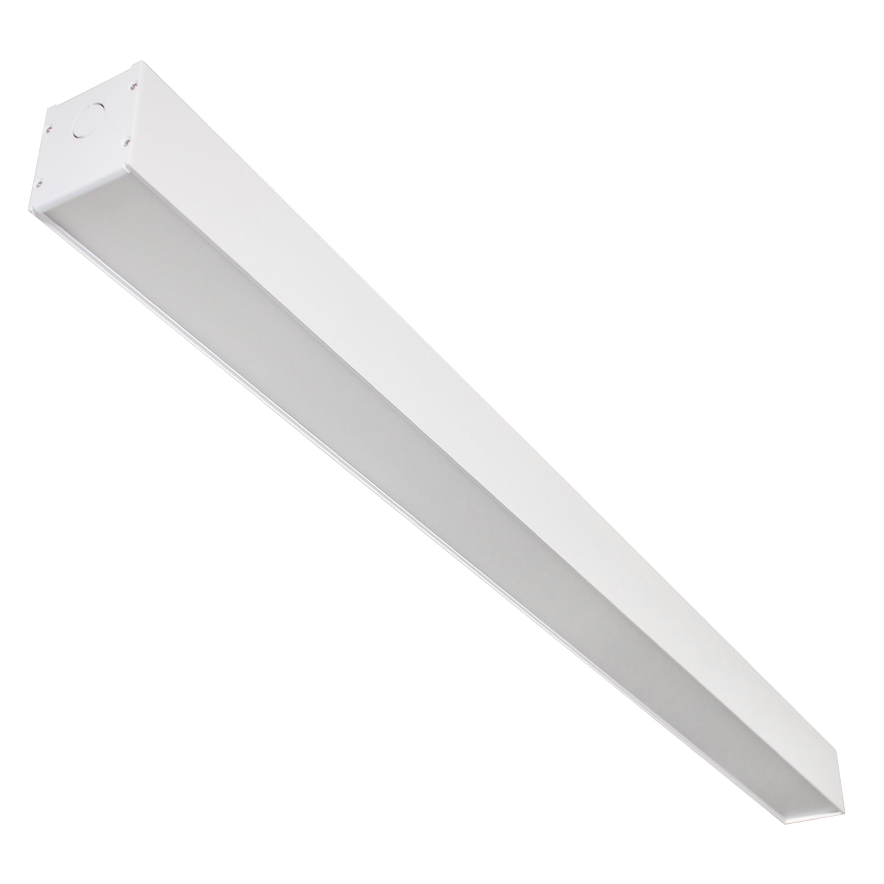 This LED strip light is constructed with an aluminum housing with removable K/O plates for easy wiring and end-to-end connections (linkable up to 7 fixtures). Installs flush to ceilings or walls (wall bracket and ceiling brackets sold separately) or can be suspended from ceiling. A surface canopy box is also available (sold separately) for use to hide wiring and provide a finished appearance when used in suspension mounting applications. It has a polycarbonate (PC) frosted shatterproof lens.