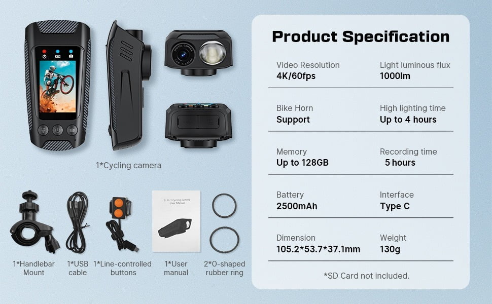 This isn’t just a camera — it’s your 4K motorcycle dash cam, bike light, and electric horn, seamlessly packed into one compact device. Designed for cyclists, motorbike riders, and e-scooter users, this cycling camera is engineered for total visibility, safety, and stunning video quality in every environment.