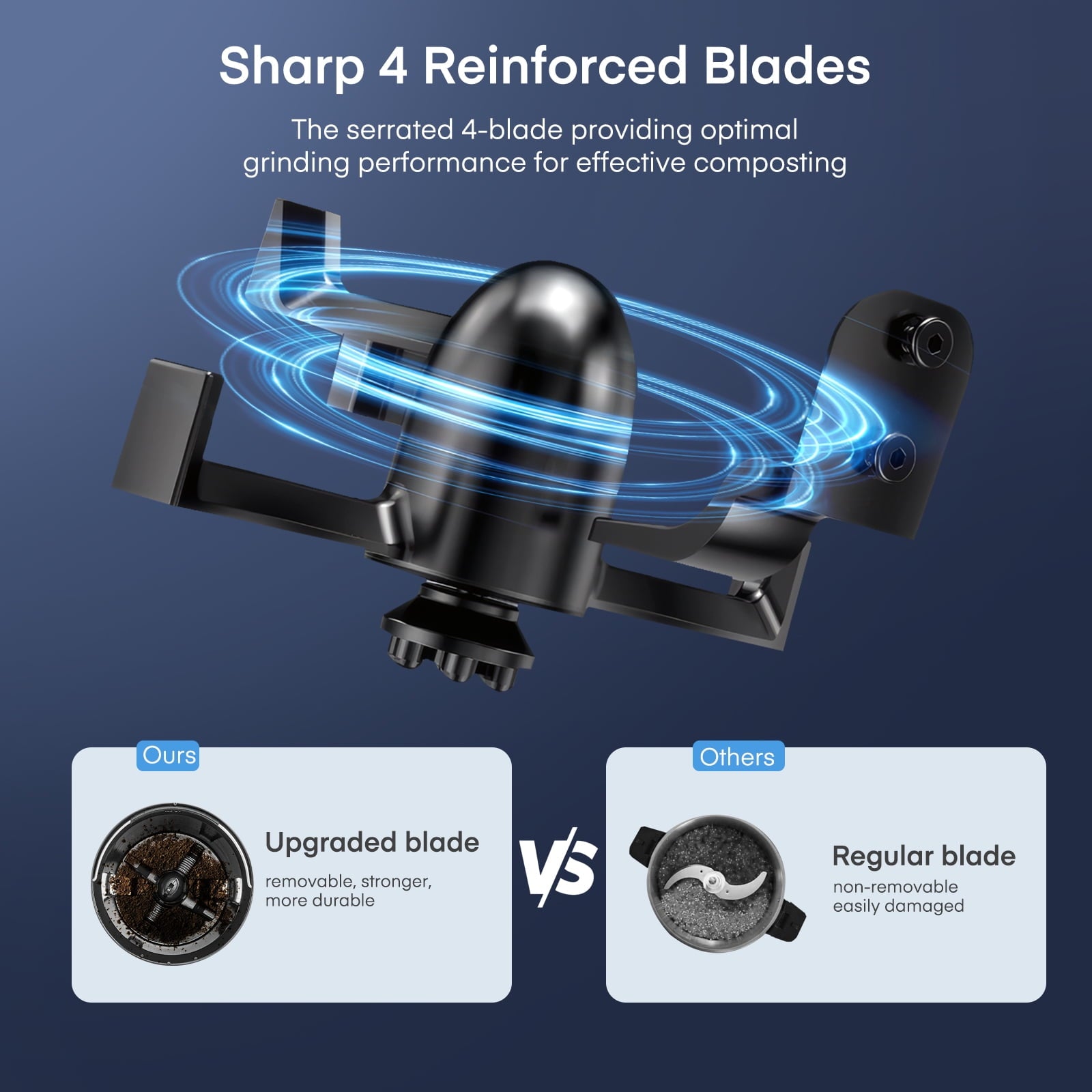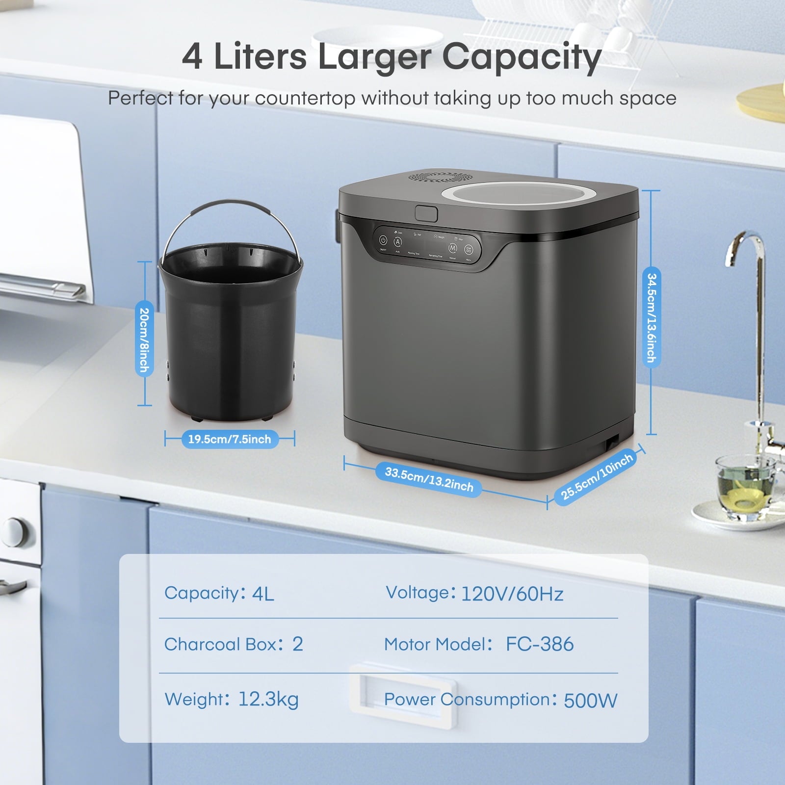 • [4L Larger Composting Capacity for Waste]Our electric composter bucket capacity is as large as 4L while others’ is 2.5L, which can handle more food waste than others for 1-time. Sturdy stainless steel casing ensures a longer service life than other plastic casing devices on the market.
