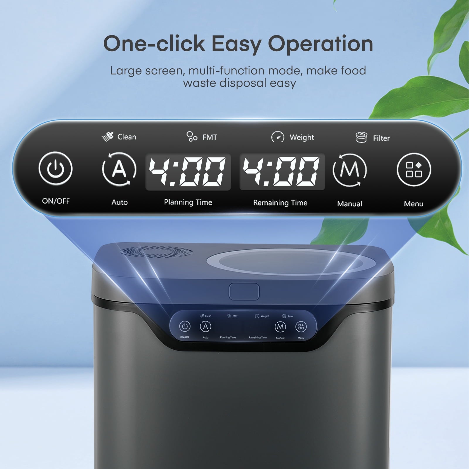 • [Smart & User-friendly Design]Our kitchen composter featuring a intuitive LED display, ensures easy operation for all ages. With one-touch auto-clean function, say goodbye to manual scrubbing, save time and effort. The transparent viewing window lets you monitor progress and enjoy the fascinating transformation of waste into compost.