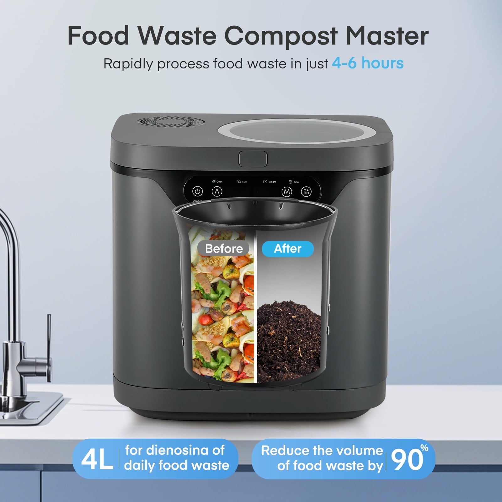 Home Composting Bins 4L Electric Composter for Kitchen, Countertop Compost Bin Indoor with Visible Window, LED Display