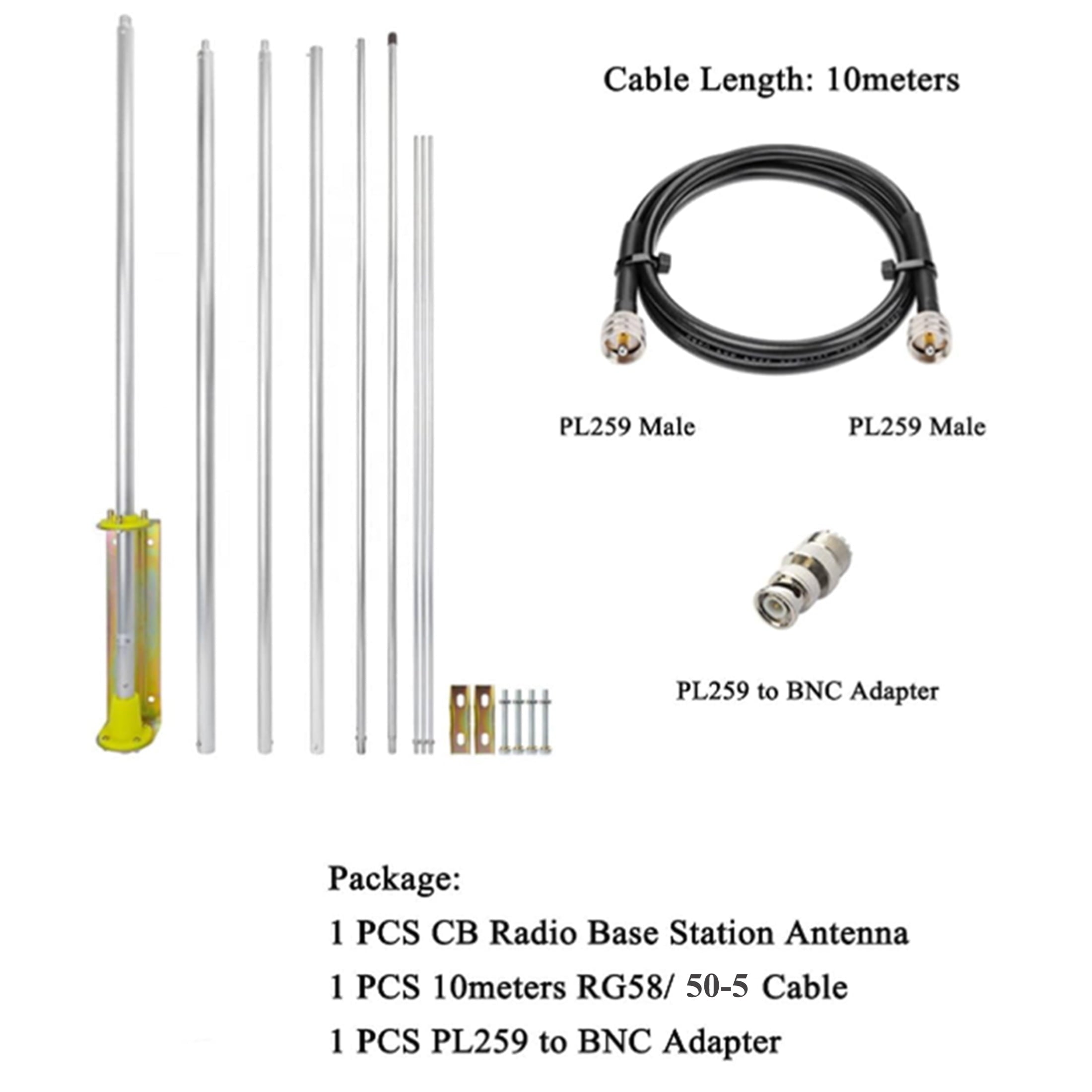 - Complete Installation Kit – Includes 10m coaxial cable with PL-259 connectors for quick and easy setup.