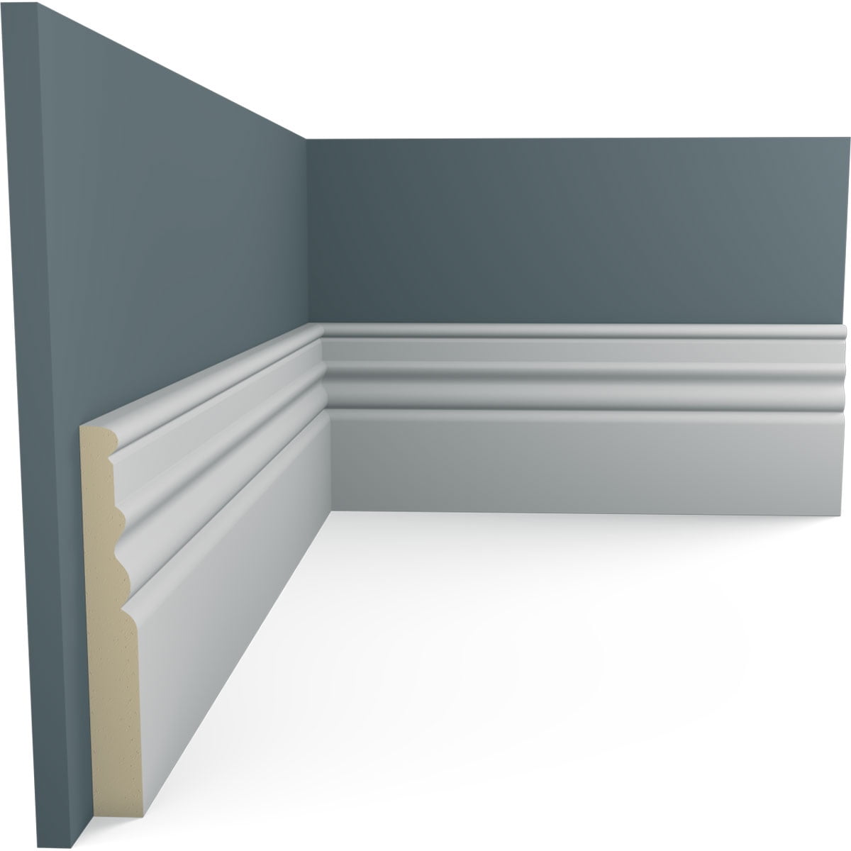 Beautiful baseboard is a great way to separate and define each room. With each design modeled after traditional plaster type mouldings, our lightweight polyurethane mouldings give the same rich detail, yet at a fraction of the cost. Another benefit of polyurethane is it will not rot or crack, and is impervious to insect manifestations. It comes to you factory primed and ready for your paint, faux finish, gel stain, marbleizing and more.