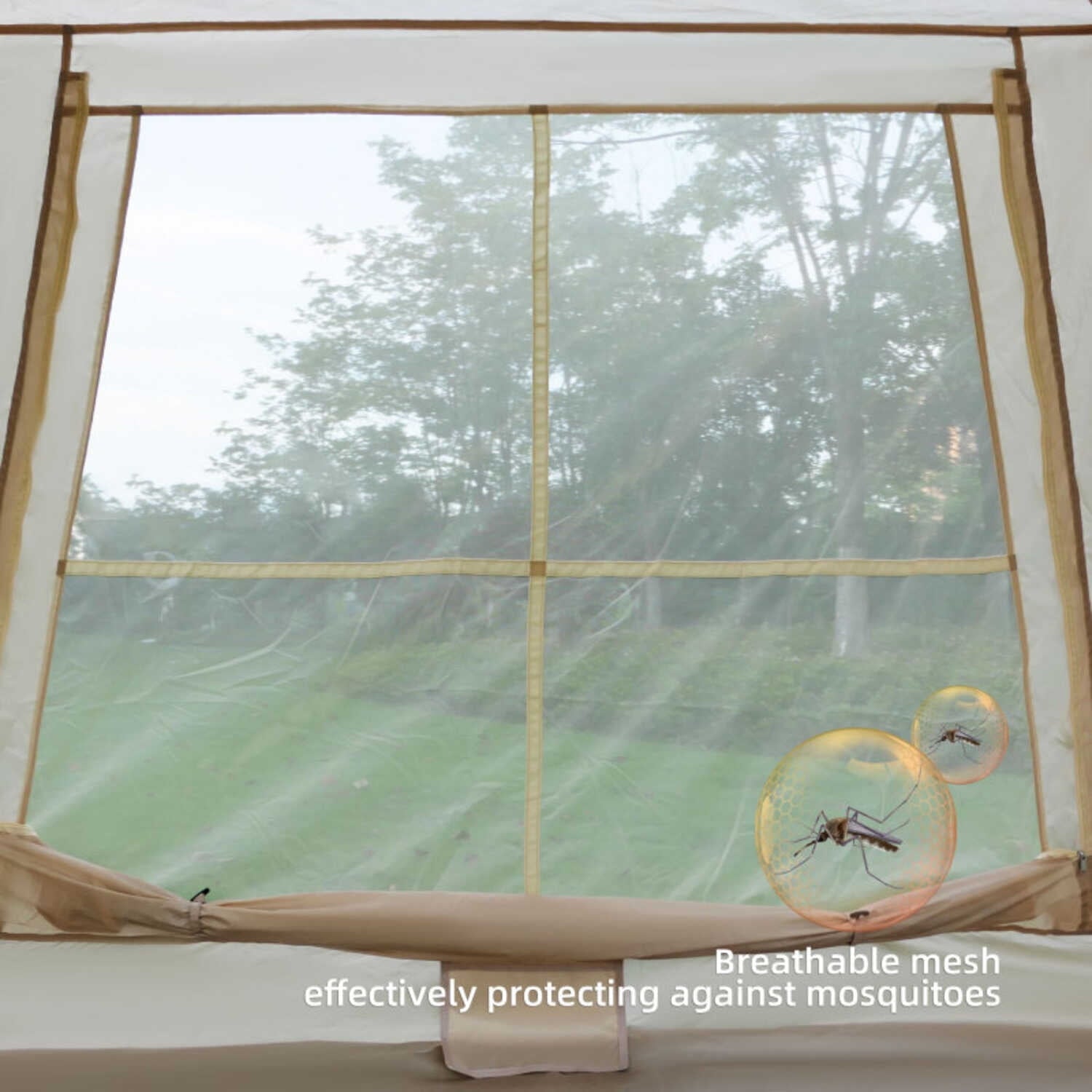 - ãVERSATILE FOUR-SIDED DESIGNã- The four-sided structure of the tent provides enhanced stability and versatility. Each side is thoughtfully designed with functional elements, such as mesh windows for optimal ventilation and zippered doors for easy access. This design allows you to enjoy a comfortable outdoor experience while keeping insects out.â