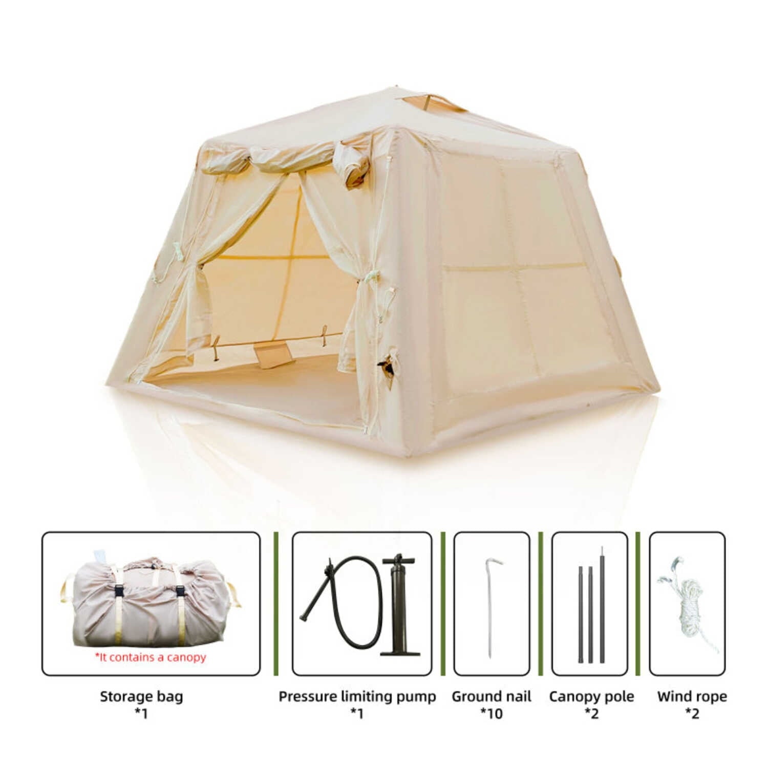 - ãEASY SETUP AND PORTABILITYã- Thanks to its inflatable design, setting up this tent is quick and hassle-free. With an air pump (included) , you can have the tent fully inflated and ready to use in just a few minutes. When deflated, it folds down into a compact size, making it easy to carry and store in your car, perfect for camping trips, festivals, and other outdoor activities.â
